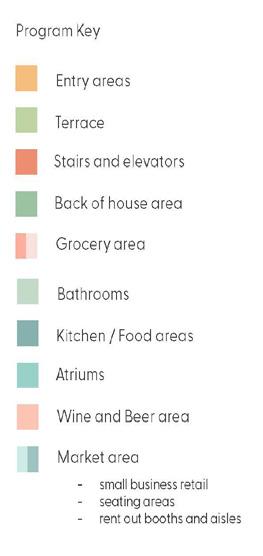 Section perspective of the upper and lower levels of the market
