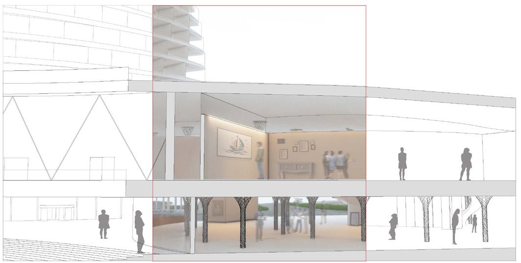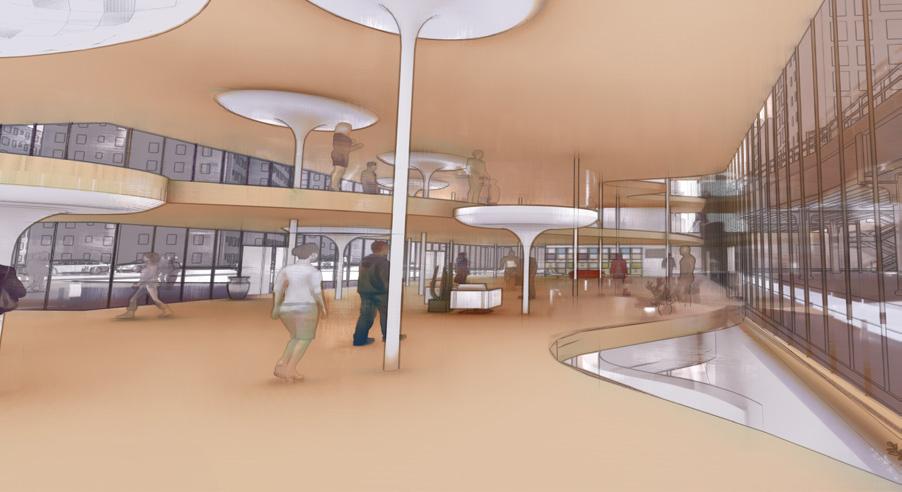 Interior rendering of the circulation around and use of the columns