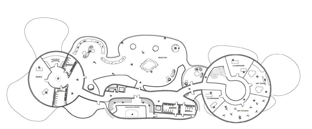 Floor plan of the upper level of the art center