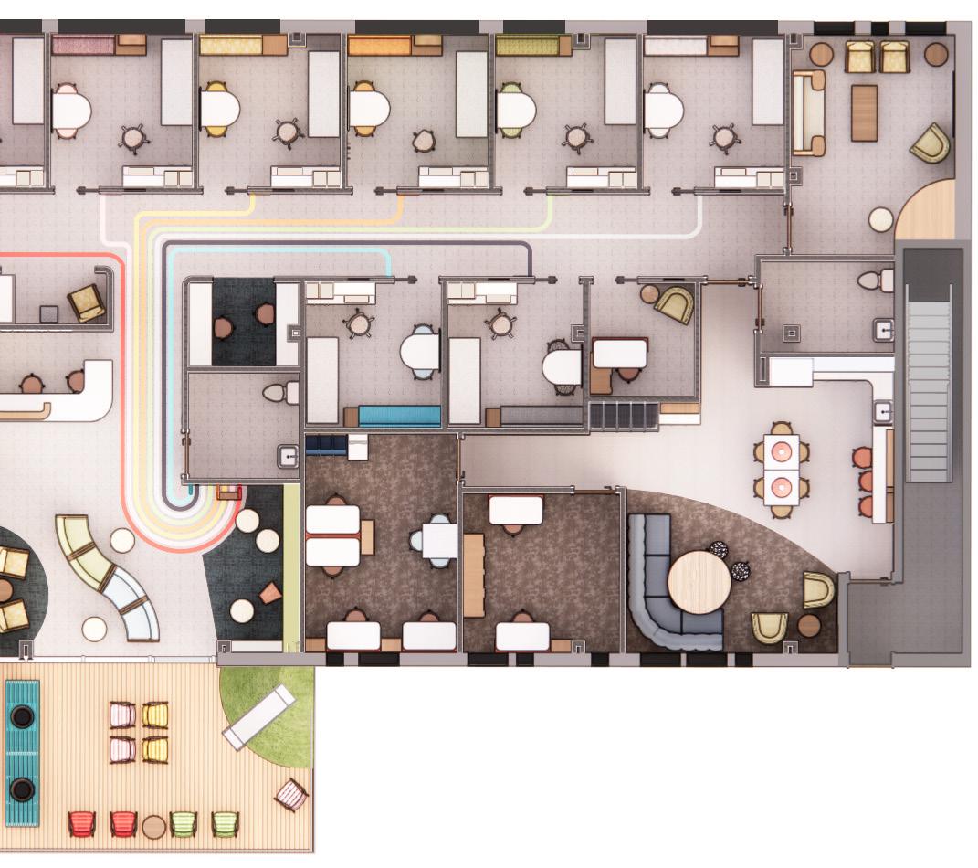 Through the use of color, line, and form this space will offer a little piece of joy to those who may be in a tough part of their journey.