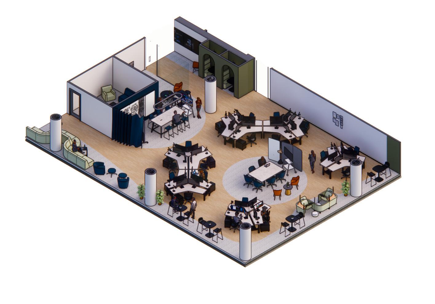 The knowledge that workers cycle between five work modes throughout the workday affected the layout of the space. Work modes and the frequency of shifts between them are specific to an individual to achieve optimal productivity.