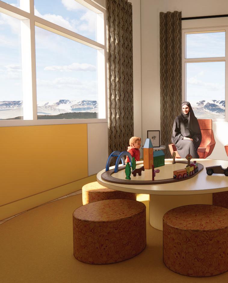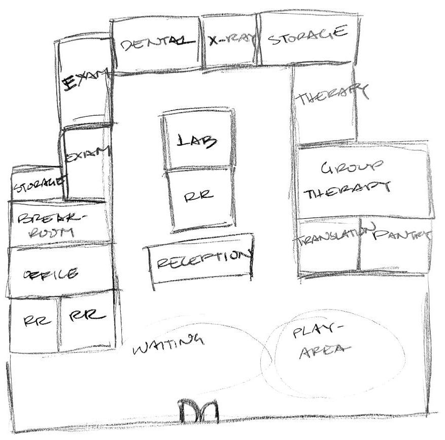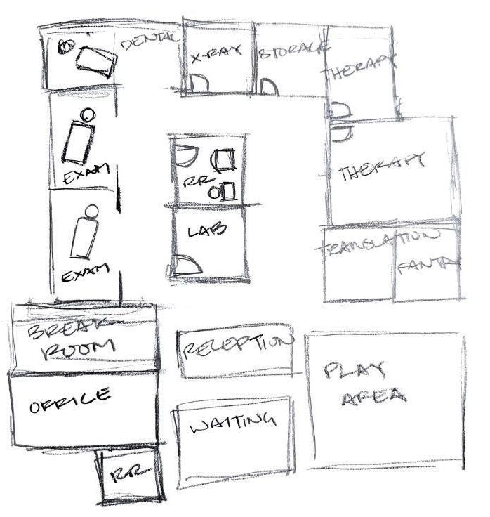Bud Bailey Family Medical needs a space for children to safely play within the office because refugee families often have several young children. A play area with a single path of entry will be located away from the entrance doors to provide safety and give the parents easy visibility to their children.