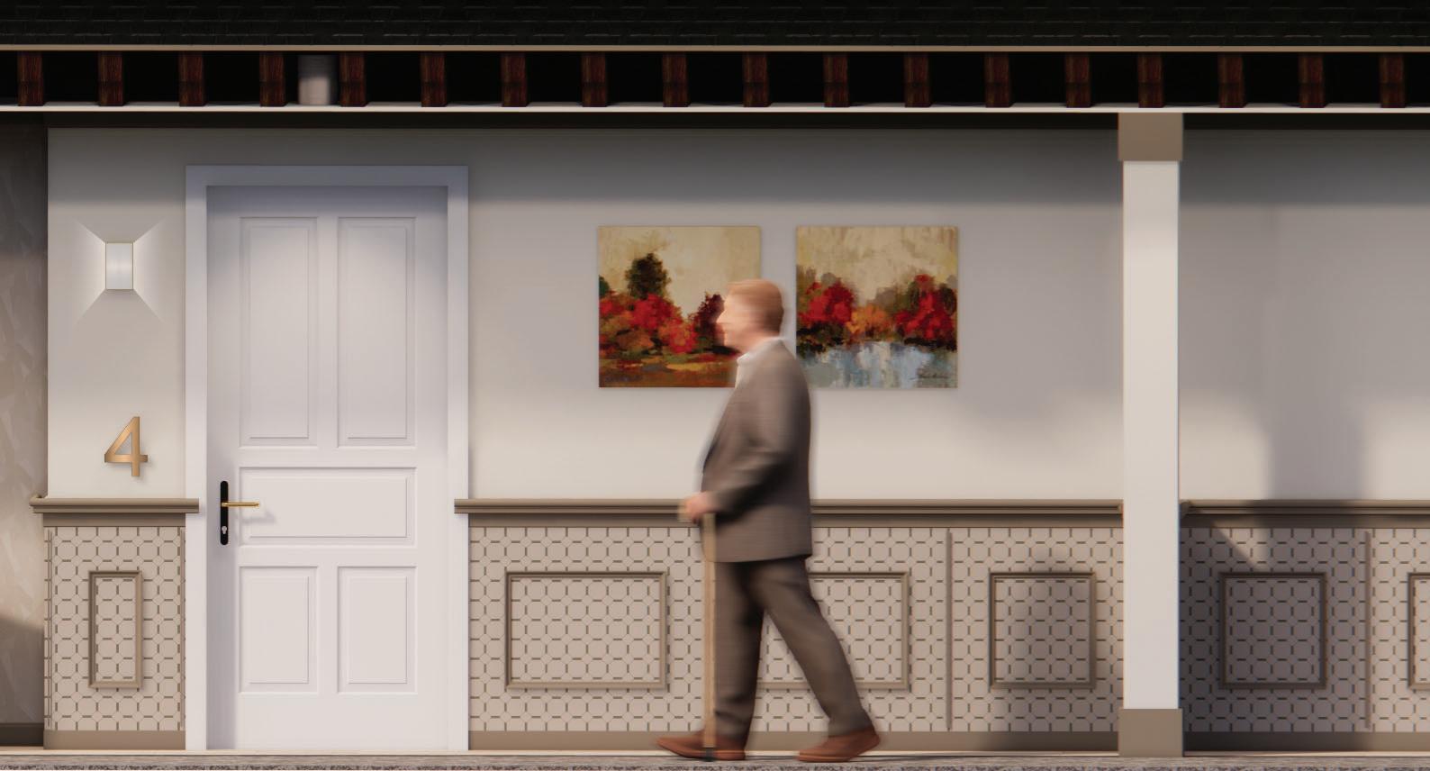 Hearing is another limitation that is commonly developed in Elderly people. Most hearing loss is caused by loud noises, making it vital to design acoustically comfortable spaces in Autumn Oak Villas. Keeping community spaces under 30 decibels is recommended to improve communication and eliminate the risk of more hearing damage. Avoiding low reflective ceilings, long rectangular rooms, and using reflective ceiling light fixtures were considerations used to help keep decibels low.