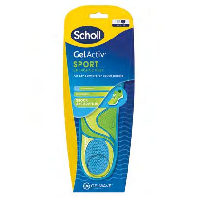 Scholl’s new Gel Activ® insole range are made with revolutionary Gel Wave™ technology, that act like tiny springs to absorb shock and new top cloth designs to keep feet odourfree, dry and cool all day.