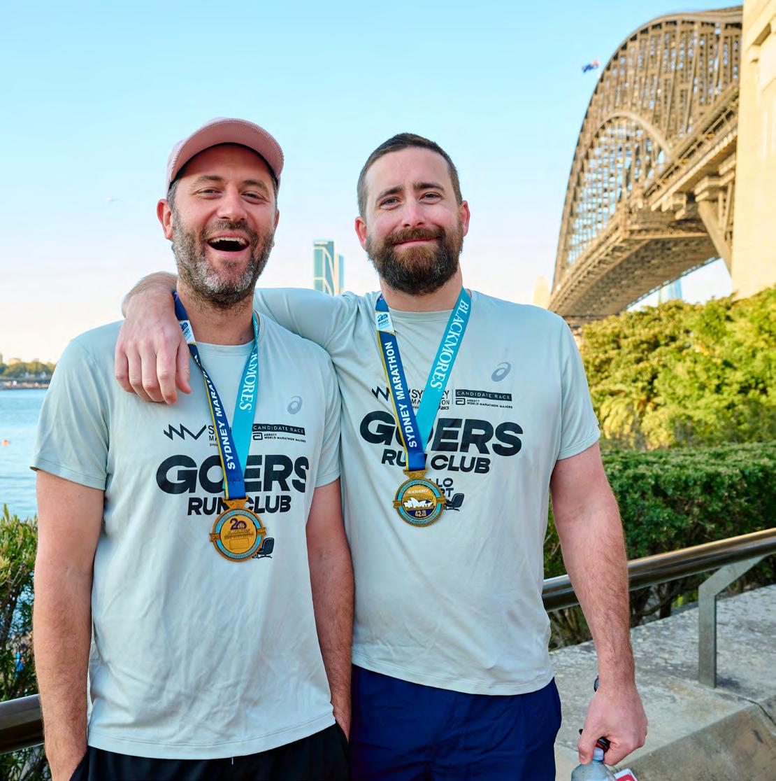 Tom and Eddy before meeting up with the Goers Run Club at the 2023 Sydney Marathon.