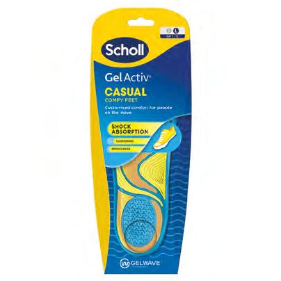 Scholl’s new Gel Activ® insole range are made with revolutionary Gel Wave™ technology, that act like tiny springs to absorb shock and new top cloth designs to keep feet odourfree, dry and cool all day.