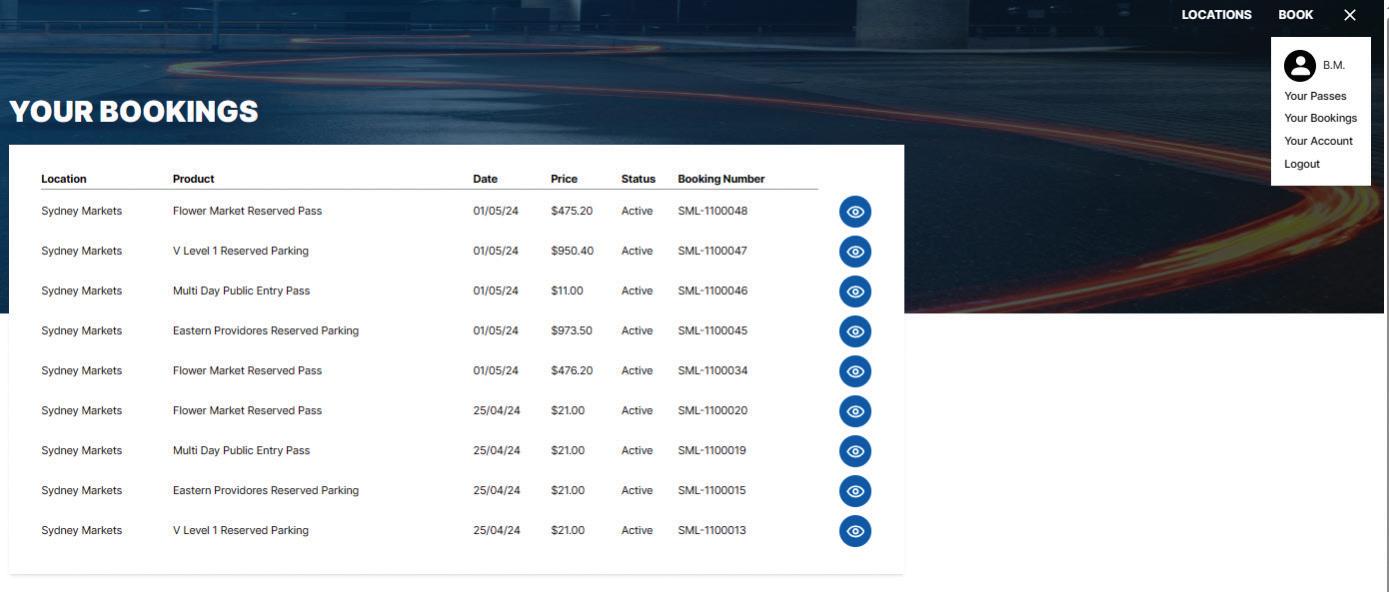Access the SML Buyers portal and click on Entry & Parking Passes to access Prime Park