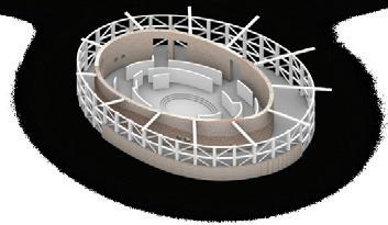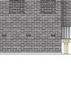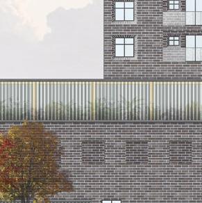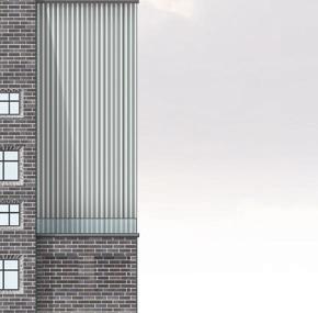 Primary cladding material, drawing on local ypologies for material selection, while contrasting with the porosit y provided by the Channel Glass.