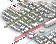 Communitas Nor th reimagines downtown Sudbury by transforming underutilized urban blocks into an engaging public realm rooted in the “spirit of community”. The proposal addresses gaps in density and missed opportunities for social interaction, encouraging people to linger, engage, and connect not only with each other, but also with he built environment. A key strategy unearths Junction Creek at Memorial Park, drawing people to a revitalized waterfront and extending a tree -lined pedestrian and cycling trail that funnels visitors into a cit y square. Concrete planters with sof t edges of fer natural seating, creating moments of pause aligned with Jan Gehl’s principles of urban livability