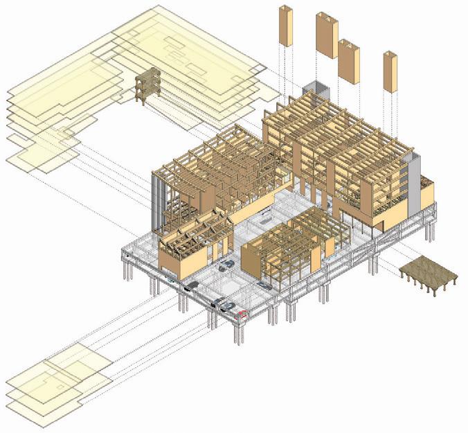 ◦ 5-PLY CROSS LAMINATED TIMBER STRUCTURAL SLAB + GLULAM TIMBER POST & BEAM CONSTRUCTION BELOW GRADE [PARKADE]