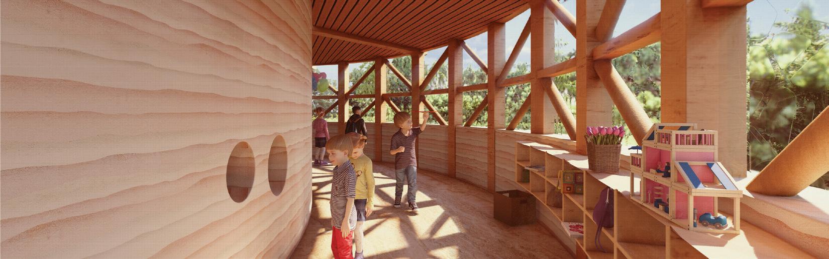 The Moulin-a-Fleur Kindergarten proposes a design that seamlessly integrates the existing playground with the school premises, acting as a bridge between education and recreation. The design pays homage to the renowned Flour mill, once slated for destruction, by preserving its essence and reimagining it