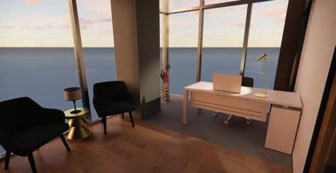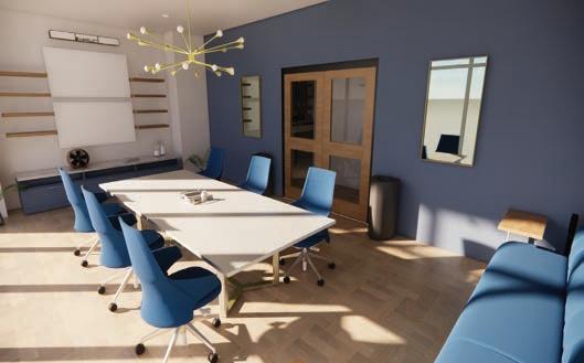 AFTER ENTERING THE SPACE, THE OFFICE LOGO IS DIRECTLY IN FRONT OF THE CONFRENCE ROOM DOORS TO CREATE DIVIDING PRIVACY FROM THE SOCIAL SPACE AND PRIVATE MEETING ROOM. TO THE RIGHT THERE IS A STAFF COFFEE BAR THAT CAN BE USED FOR GROUP MEETINGS AND STAFF FOOD STORAGE. TO THE LEFT THERE IS A LOUNGE SPACE FOR STAFF TO SOCIALIZE.