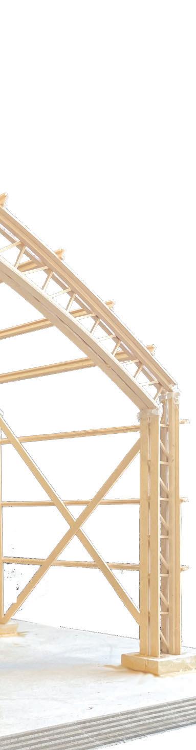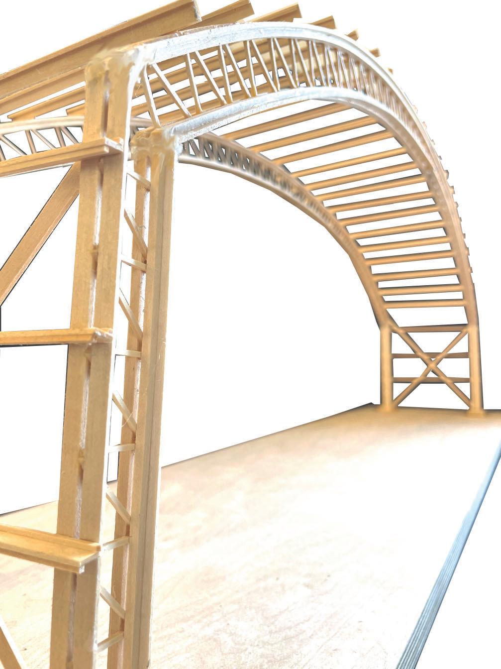 Through the iterative design process, I conceived a dynamic roof structure that not only harmonizes with the curves inherent in the airplane hangar but also introduces innovative dimensions to the architectural form. The meticulous construction of each truss involved a precision-driven approach, wherein both the top and bottom cords underwent a careful bending process. This method ensured the creation of structurally accurate and appropriately sized members, contributing to the overall integrity of the roof system.