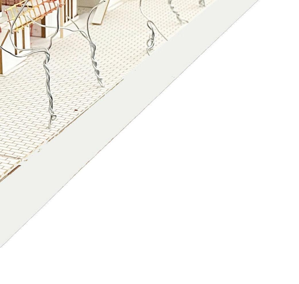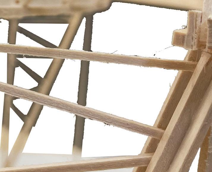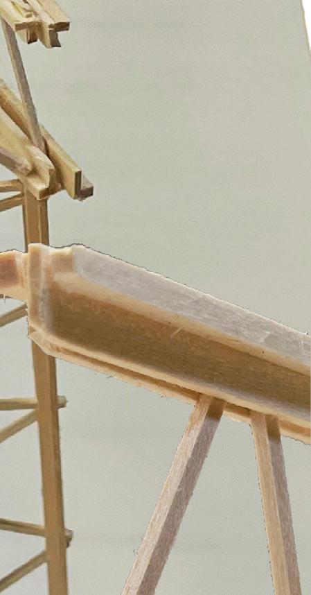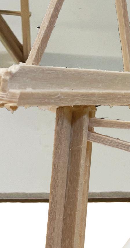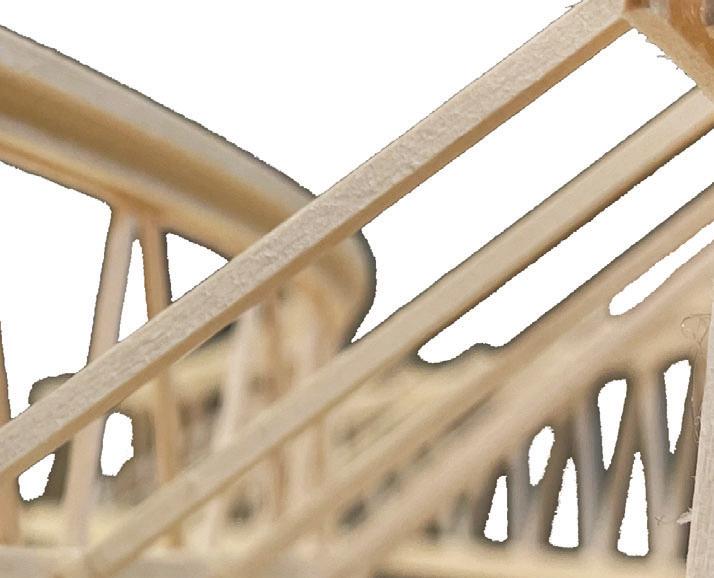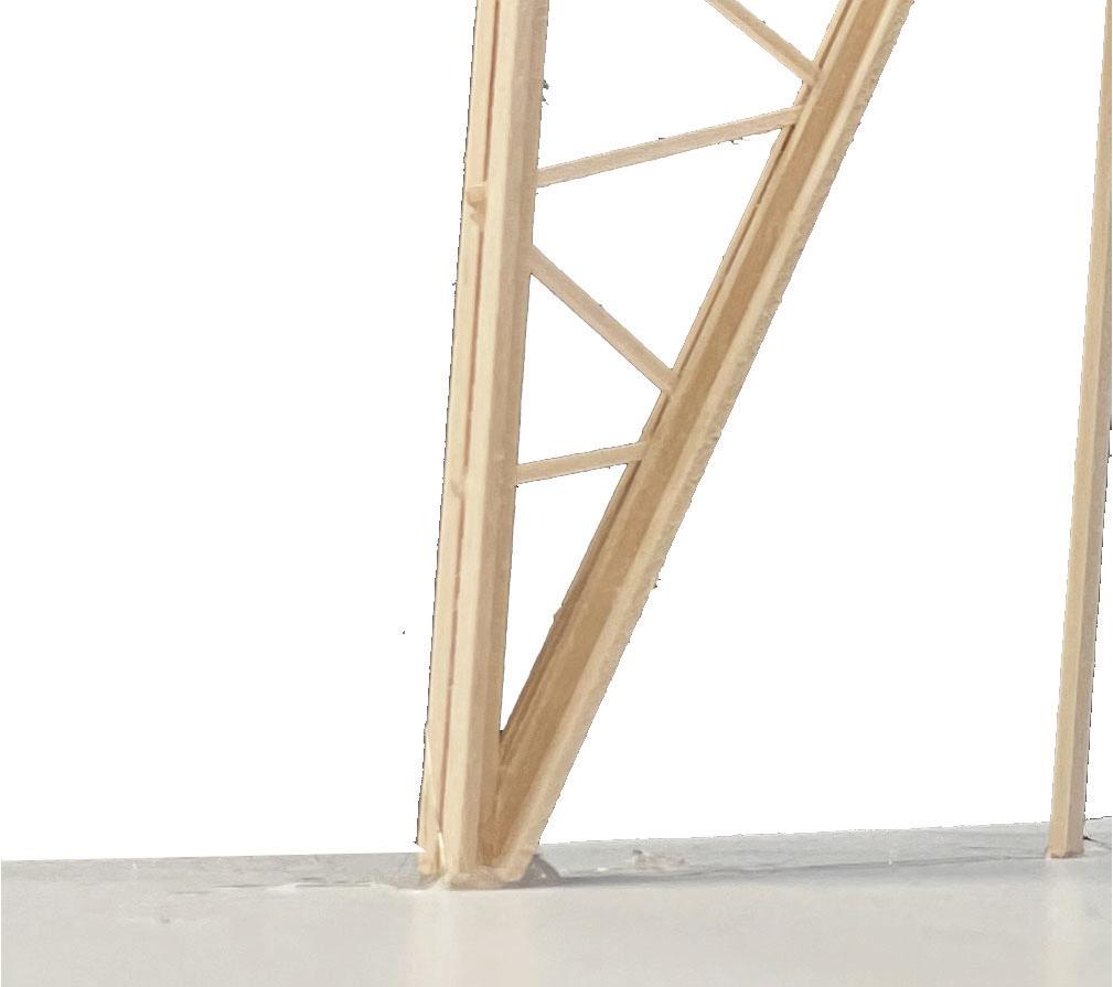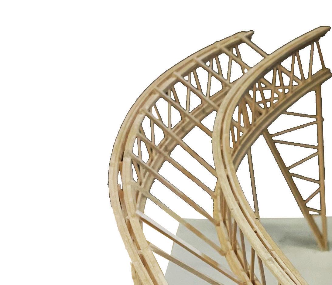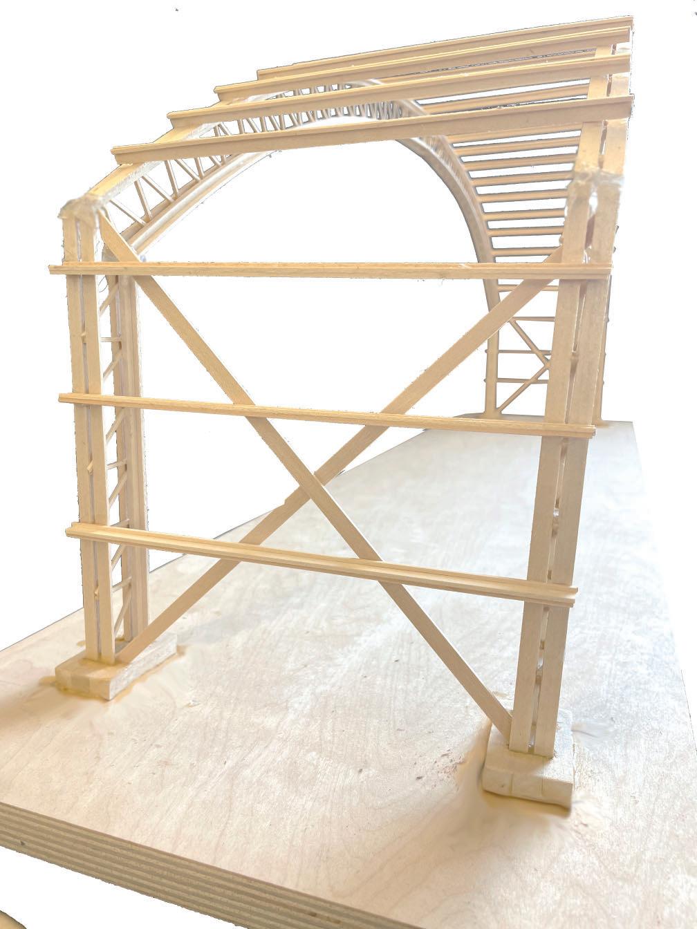 Beyond the creation of digital models, I embarked on the hands-on construction of a 1/4th scaled structural bay model of an airplane hangar. I personally bent each cord of the truss by using hot water to mold the wood into its designated form. The trusses’ webbing fortified the strength of the three foot spanning model.