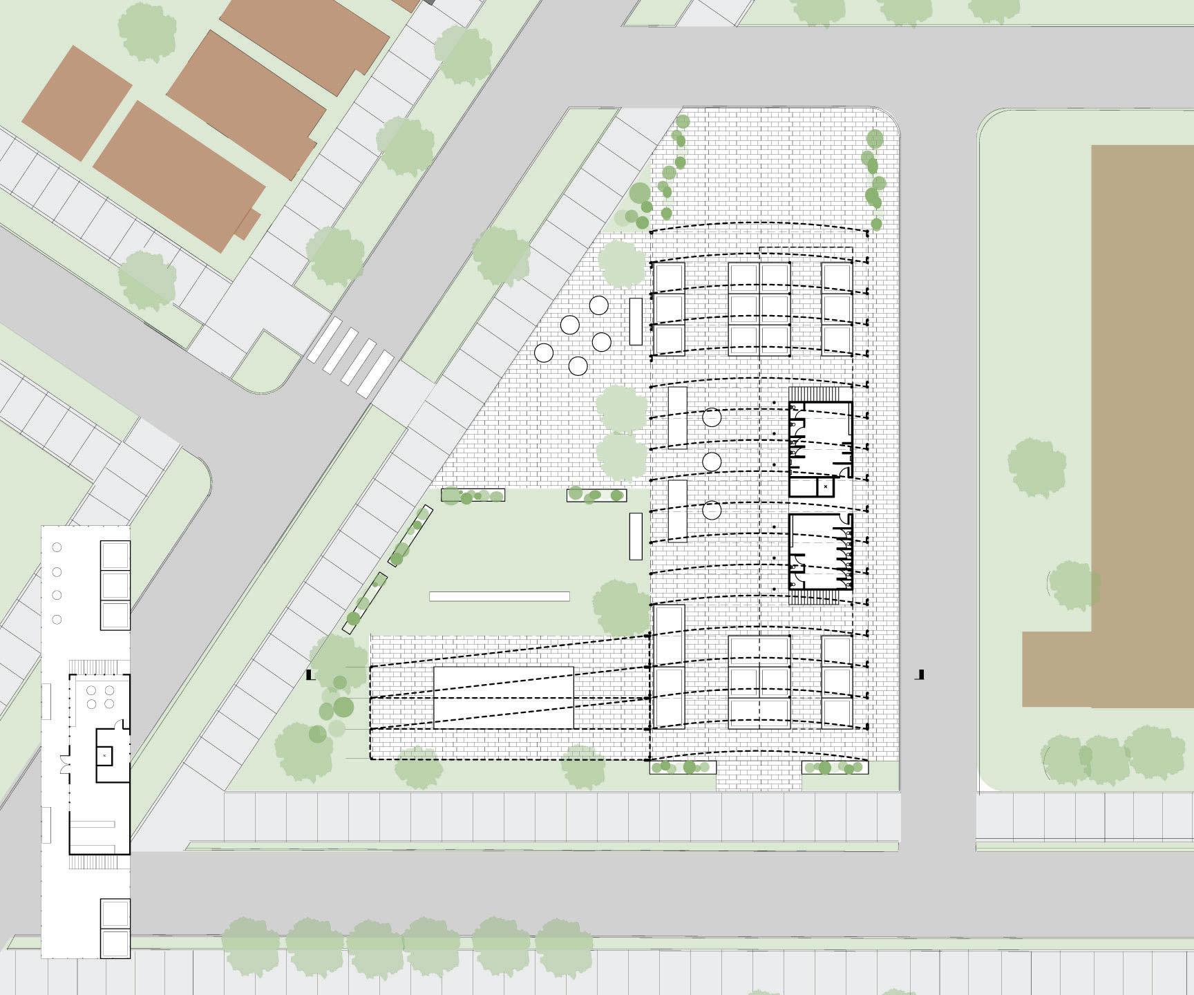 Inspired by European walkable cities, the mews is the cental aspect of the design and urban strategy.The mews configuration provides the opportunity for integration into a neighborhood.