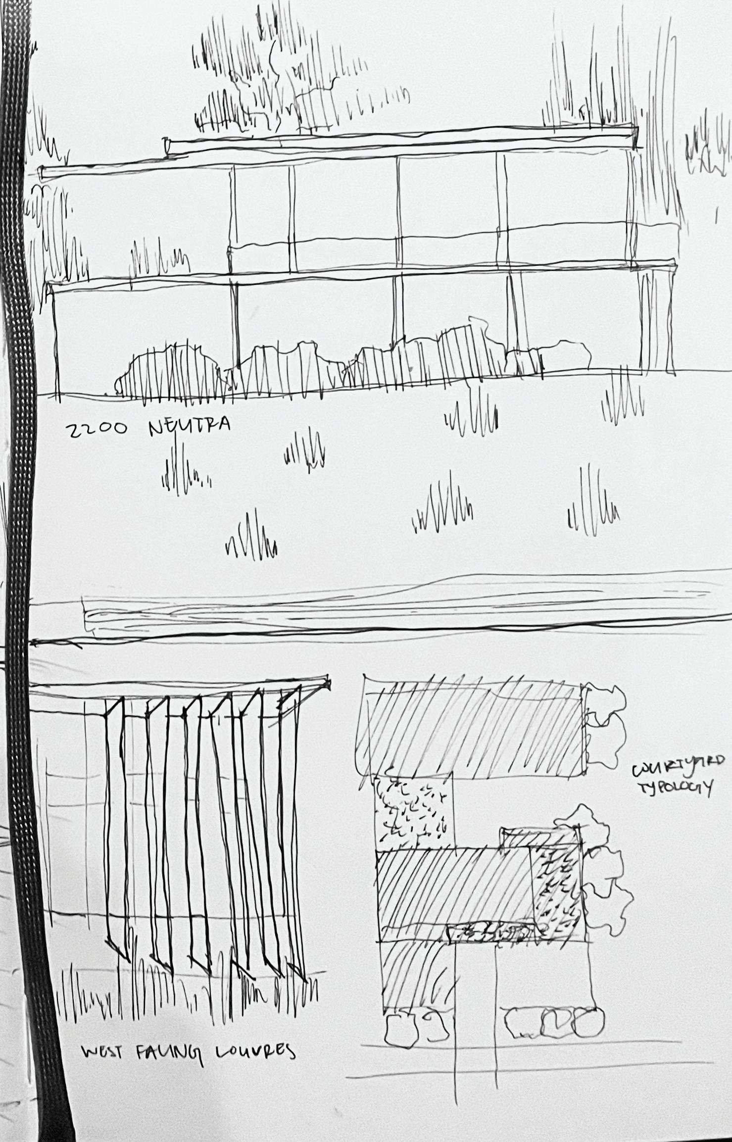 In the Fall 2023 studio led by Brian Holland, we explored residential design at various scales, all while investigating the 20th-century Modernist movement that significantly influenced American residential architecture. Focused on Los Angeles, with a closer look at the Mar Vista neighborhood designed by Gregory Ain in the 1940s, we examined Ain’s response to the World War era, creating iconic, cost-effective single-family homes with a modern aesthetic. Simultaneously, our History of Architecture III class delved into in-depth studies of Modernist Architecture.