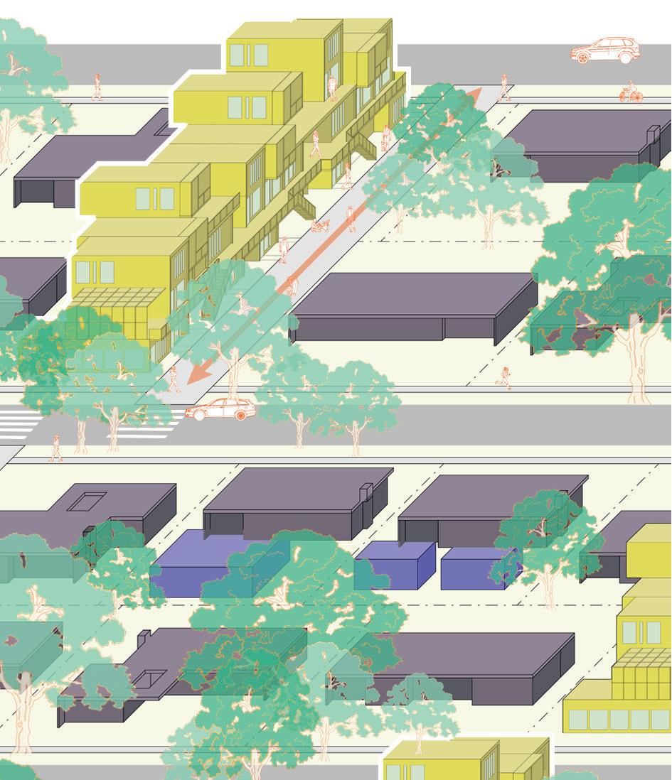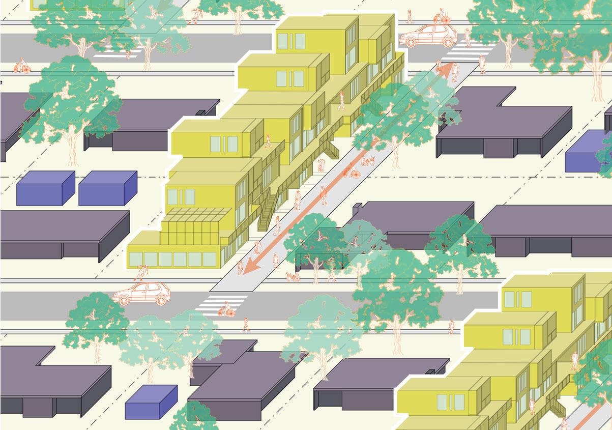 My studio project for Fall 2023 focused on the Buildner Los Angeles Affordable Housing Competition, where my collaborator and I proposed the California Affordable Housing Incentive Act, an extension of Senate Bill 09. Our design introduced a flexible, site-adaptable housing strategy inspired by European walkable cities, centered around a mews—a pedestrian-friendly corridor that integrates seamlessly into existing neighborhoods. By shifting housing units to one side of the lot, we created a wide walkway that enhances walkability in traditionally car-centric areas. The mews are bookended by flexible amenity spaces, allowing communities to tailor them to their specific needs..