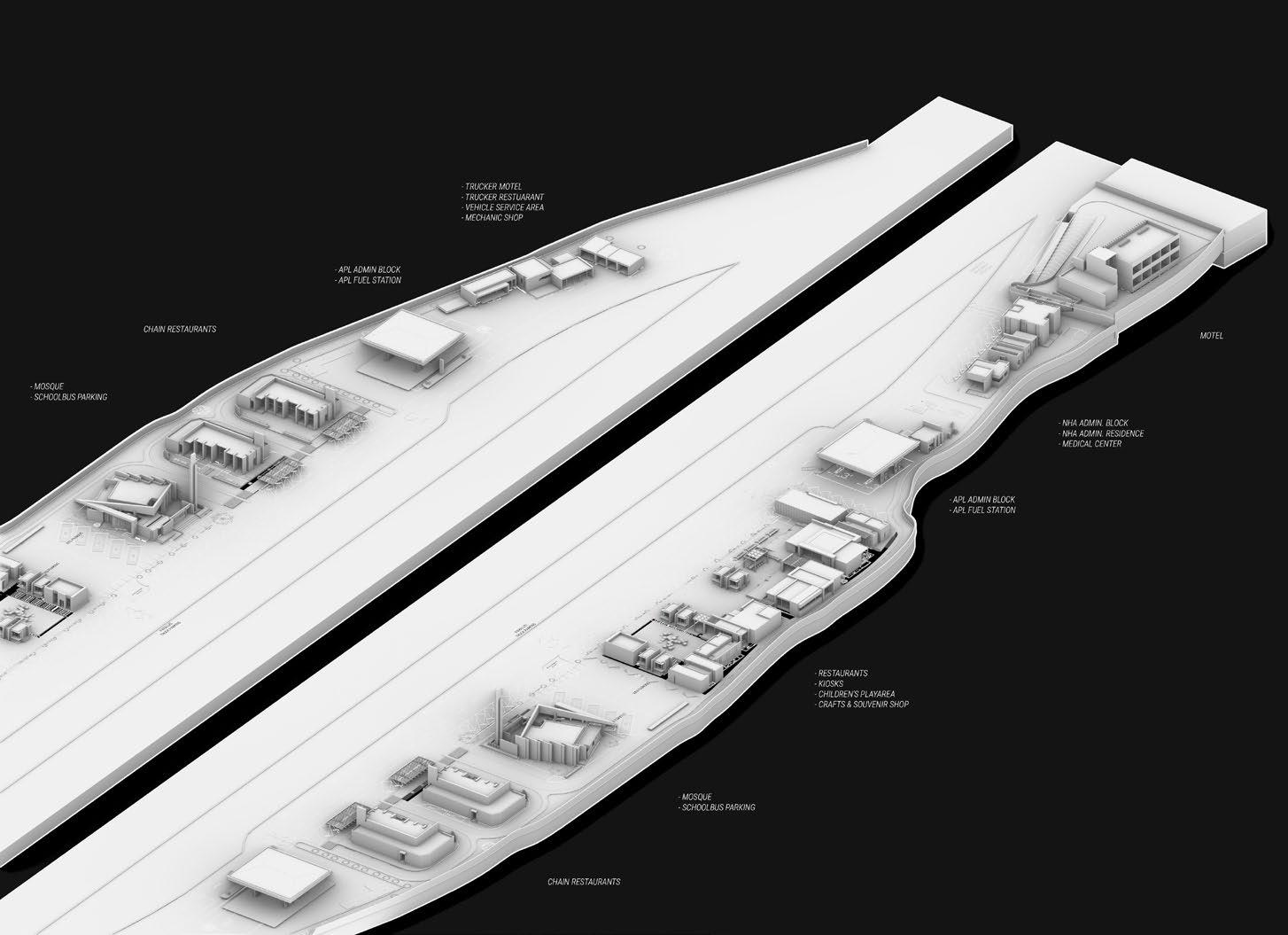 One section of the design was also alloted to truckers and high vechile drivers, providing them with the necessary rest area and a desinated parking. Similarly, a provision for school buses was also added along with a children’s play area was provided in the design to cater to the school trips that frequent the area.