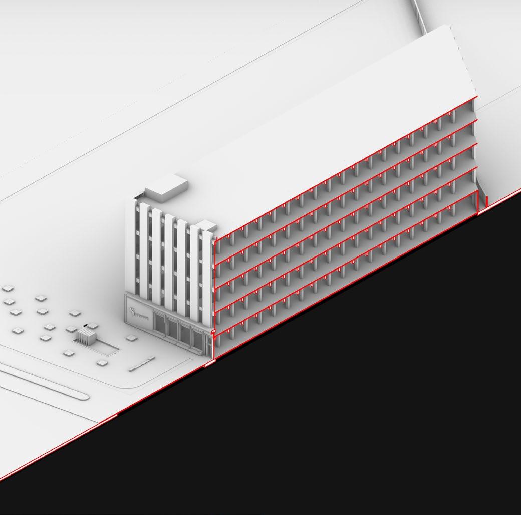 The new facade transforms the factory from a conventional industrial building into a modern, visually striking architectural statement, reflecting not only elevates the building’s appearance but also maximizes functionality, ensuring the facade serves as a fitting representation of the company’s