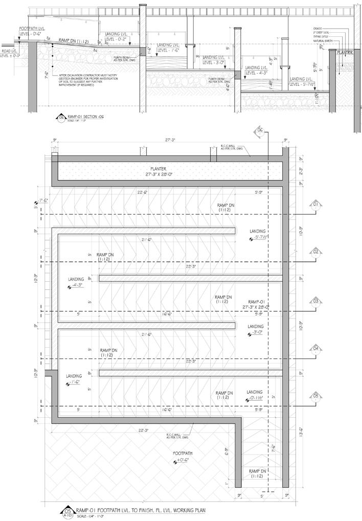Layout of the ramps themselves were taken as part of the overall architectural form, showcasing a holistic approach to accessibility throughout the design..