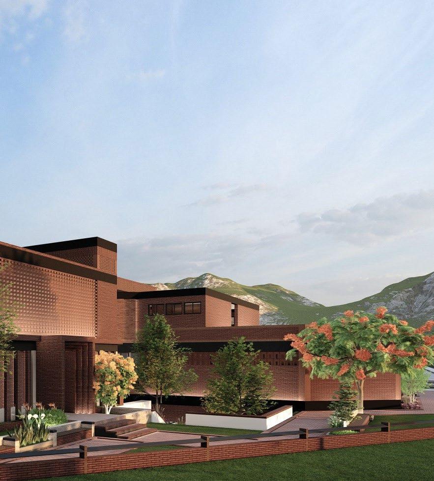 Natural finishes are used throughout the interior, including wood paneling, stone flooring, and terracotta detailing, which enhances the tactile and visual experience of the space. The local material palette is chosen not only for its environmental benefits but also for its aesthetic qualities, offering a sense of connection with the region’s heritage and natural beauty. The building is designed to reduce its carbon footprint by utilizing locally sourced building materials, such as locally quarried stone and gravel, from local vendors, thereby reducing transportation emissions and supporting the regional economy.