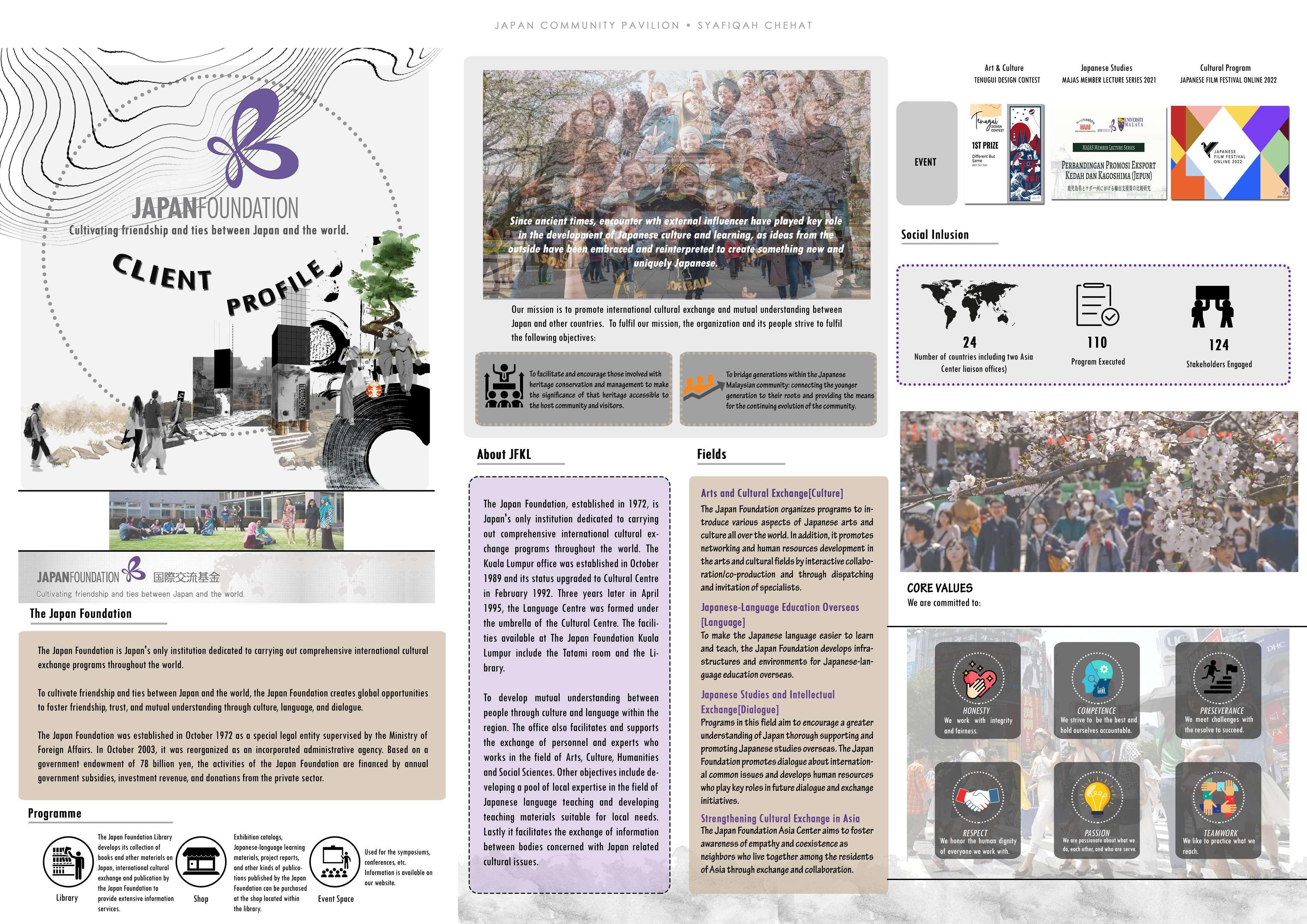 The main purpose of this project research is to promote the uniqueness of Japanese culture and lifestyle through a rich culture of local cuisine, art, language, distinctive folk crafts, and traditional performing arts. This approach provides opportunities for the community through the best experience in knowledge sharing and cultural exchange with a variety of interests to explore, interact with and immerse themselves in Japan's rich and diverse culture