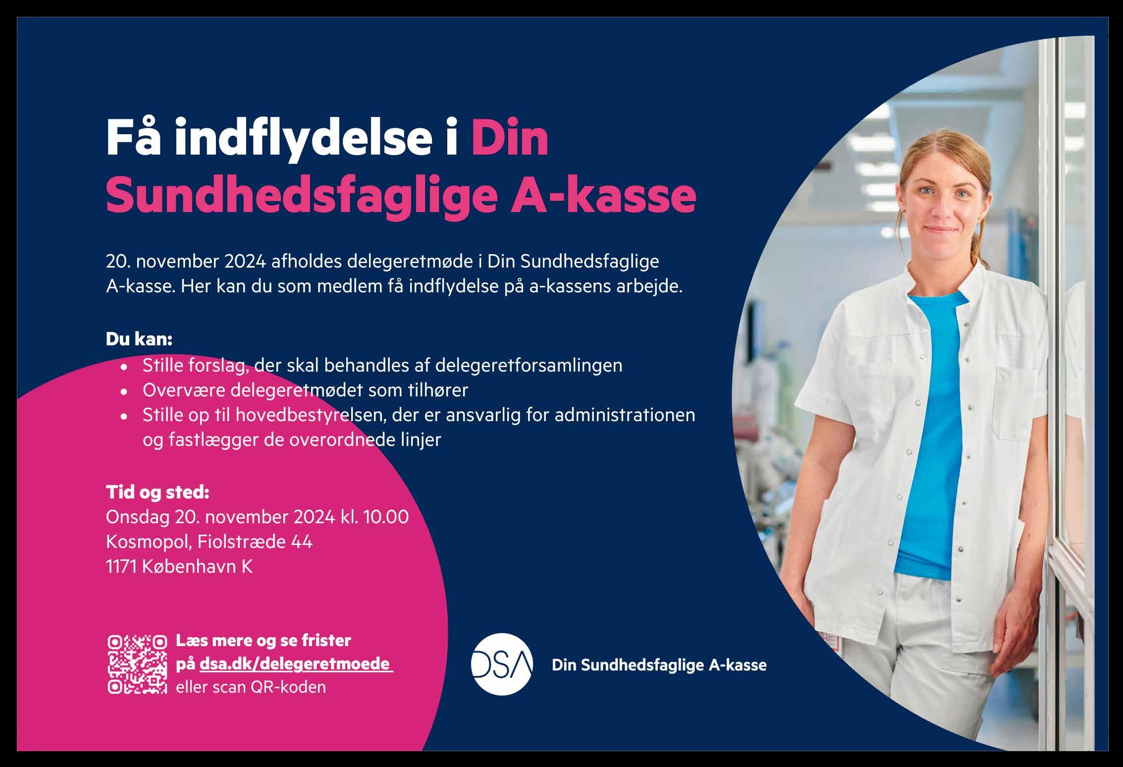 Ansvar: Dansk Sygeplejeråd har intet ansvar for produkter og ydelser, som omtales i Sygeplejerskens annoncer eller indstik. Redaktionen påtager sig intet ansvar for materialer, der indsendes uopfordret. Holdninger, der tilkendegives i artikler og andre indlæg, udtrykker ikke nødvendigvis Dansk Sygeplejeråds synspunkter.