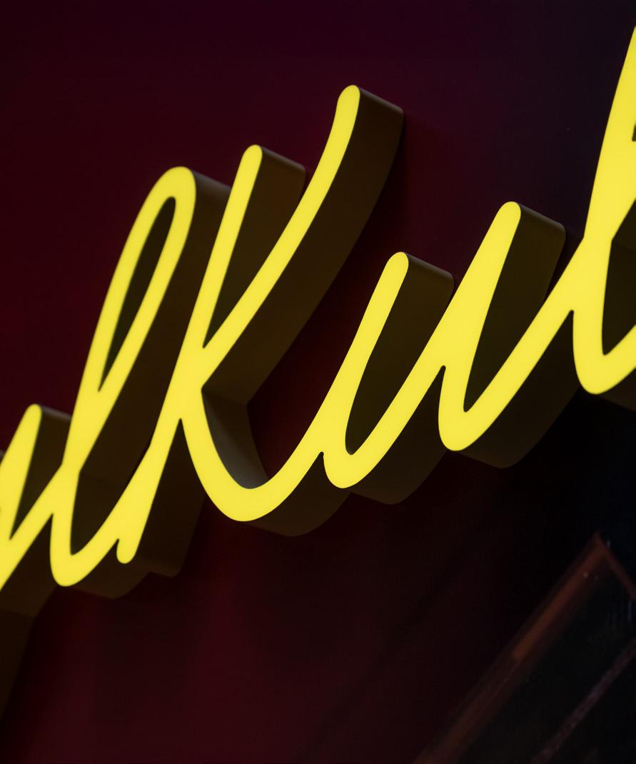 Front-lit channel letters with a stainless steel profile and a recessed diffuser for perfect edges.