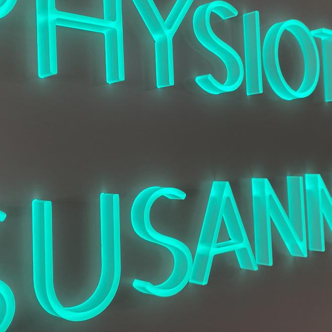 Premium front-lit letters cut from a block of opal acrylic with painted sides and perfect edges.