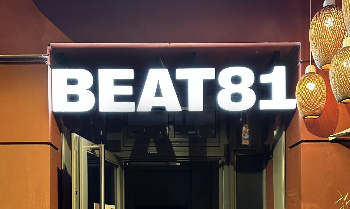Leuchtbuchstaben aus Acryl durch eine dekupierte Hintergrund Kasette durchgesteckt. Express möglich.