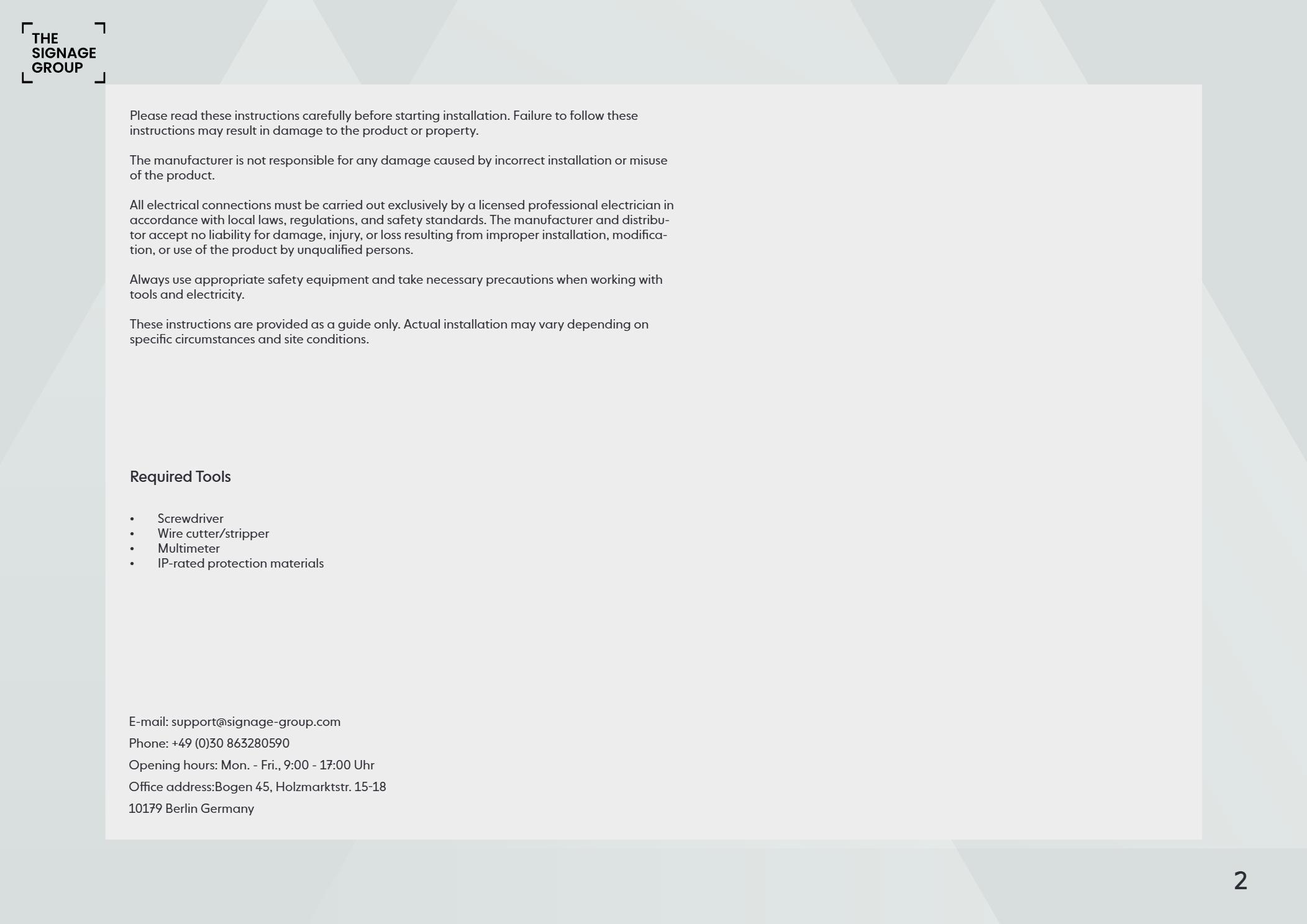 Lightbox electrical manual Eng