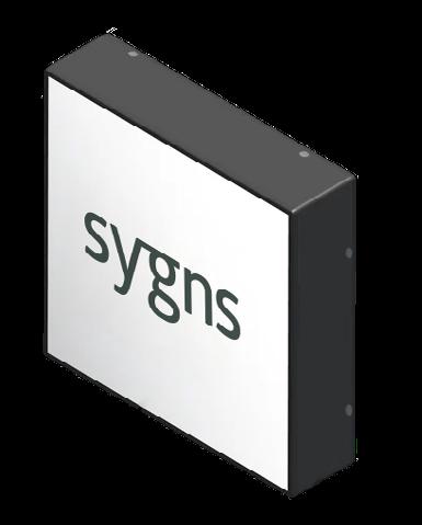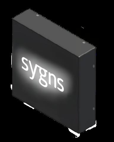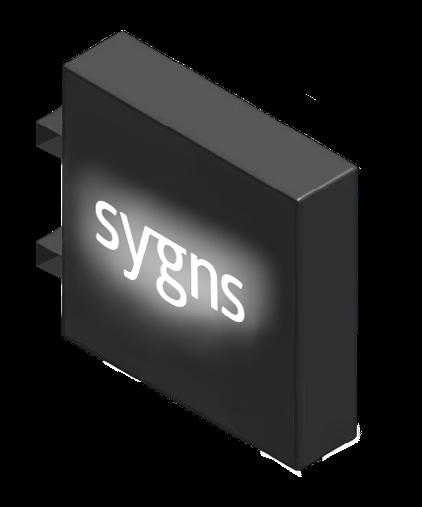 Lackierter Aluminium-Leuchtkasten mit ausgeschnittenem Design, durch Acryl beleuchtet.