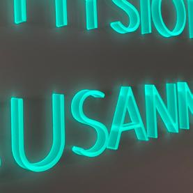 Alu-Verbund-Leuchtkasten mit ausgeschnittenem Design, durch Acryl beleuchtet.