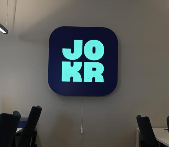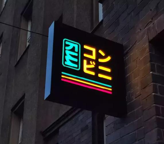 Lackierter Aluminium-Leuchtkasten mit ausgeschnittenem, durch Acryl hinterleuchtetem Design.