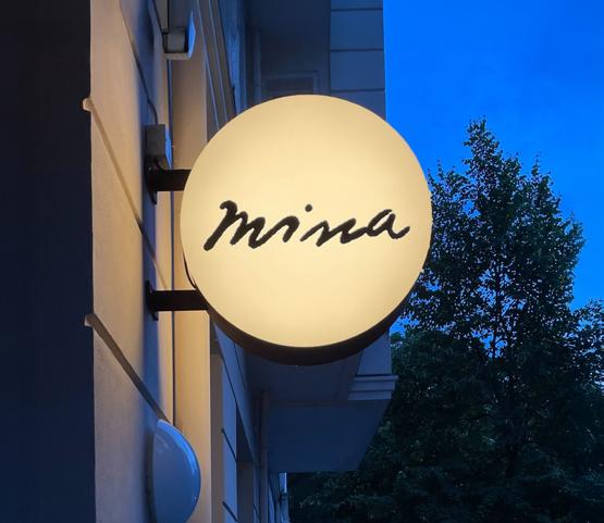 Lackierter Alu-Verbund-Leuchtkasten mit ausgeschnittenem, durch Acryl beleuchtetem Design.