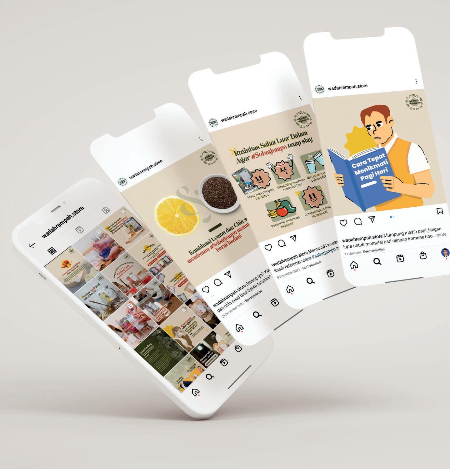 Wadah Rempah is personal business that selling herbal beverages and condiment for natural medication. I was given the opportunity to made visual brand with vintage-looks. I suit the theme by creating a logo and using components (font, colors, etc) that carry the brand images. I drew manually for main assets for ‘old-herb’ represent, also vector assets with old-tone.