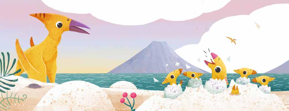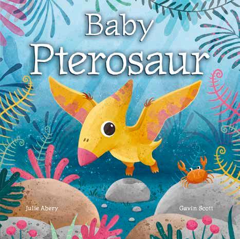 Baby Pterosaur hatches with other babies in the herd and begins to explore the prehistoric world. Will they have the courage to leap off the cliff and learn to fly? Lyrical rhyming text written by former preschool teacher Julie Abery is infused with Gavin Scott’s warm illustrations depicting the Cretaceous era, creating a delightful read for caregivers to share with babies and toddlers. The sturdy board book binding will hold up to countless readings.
