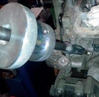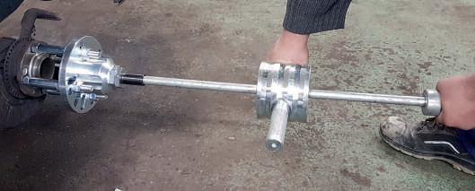 Pushing out the drive shaft, using a 16Ton Mechadraulic-Spindle, optional code GO1016