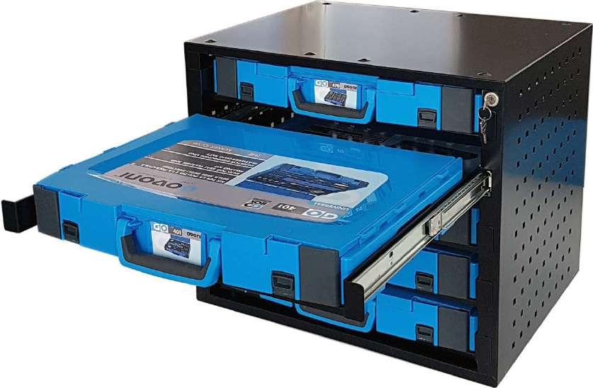 - Organisation system consisting of stackable modules for 3 or 5 GOBOX system cases that can also be screwed into each other.