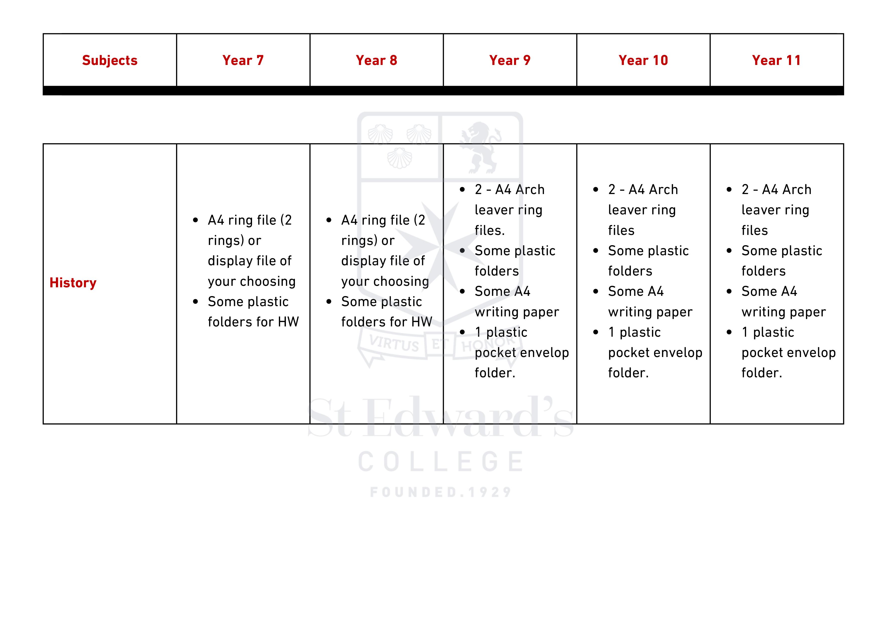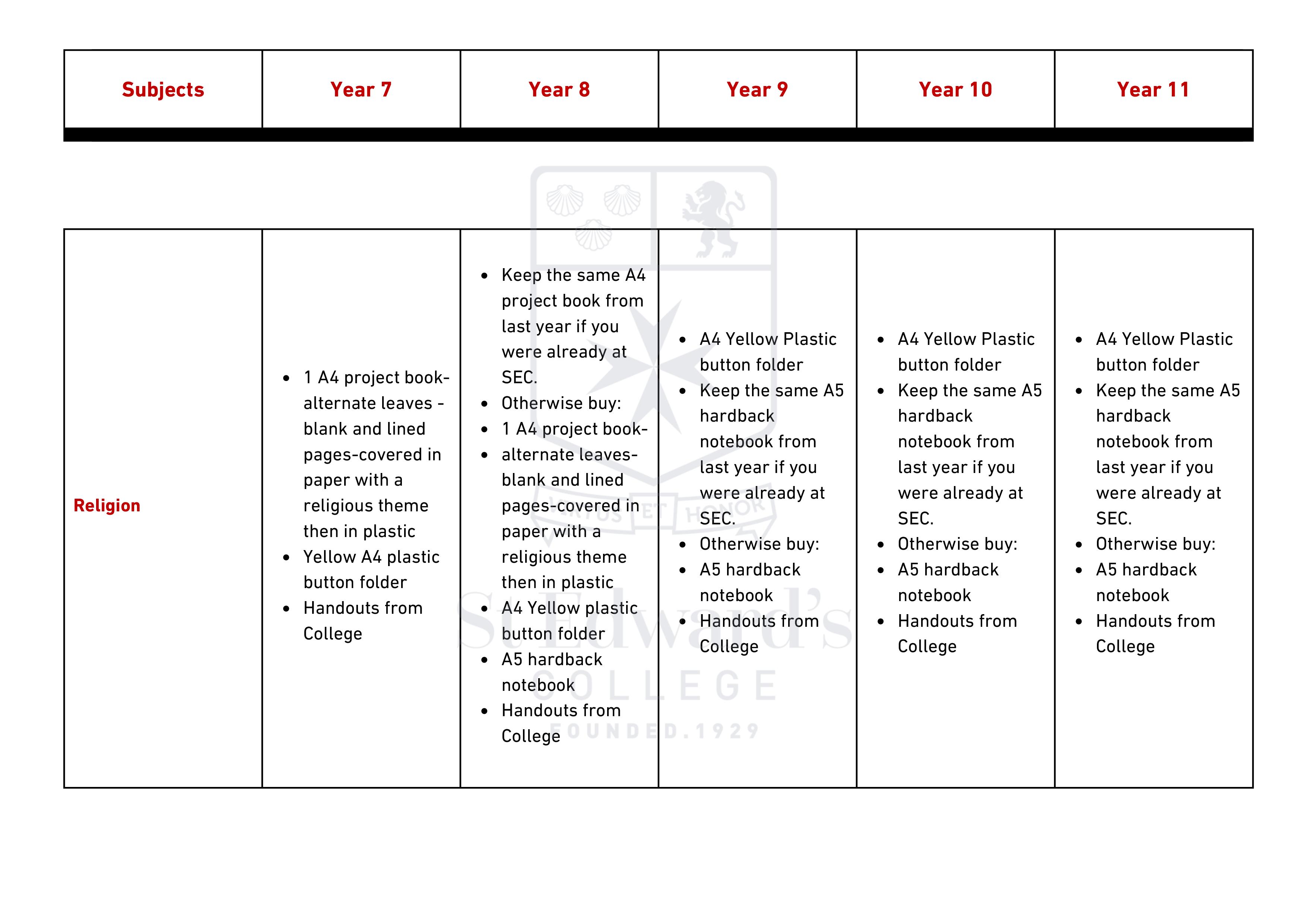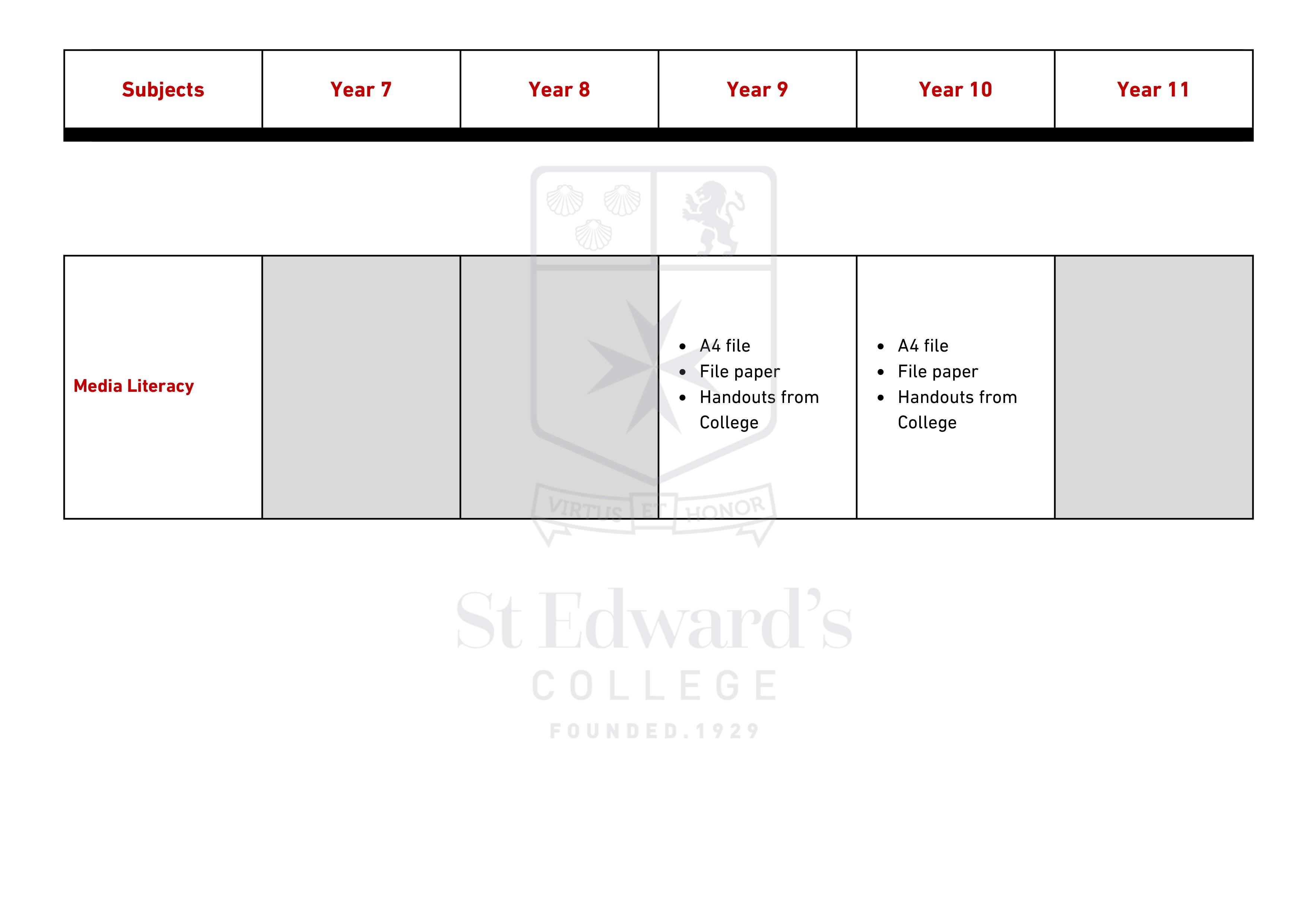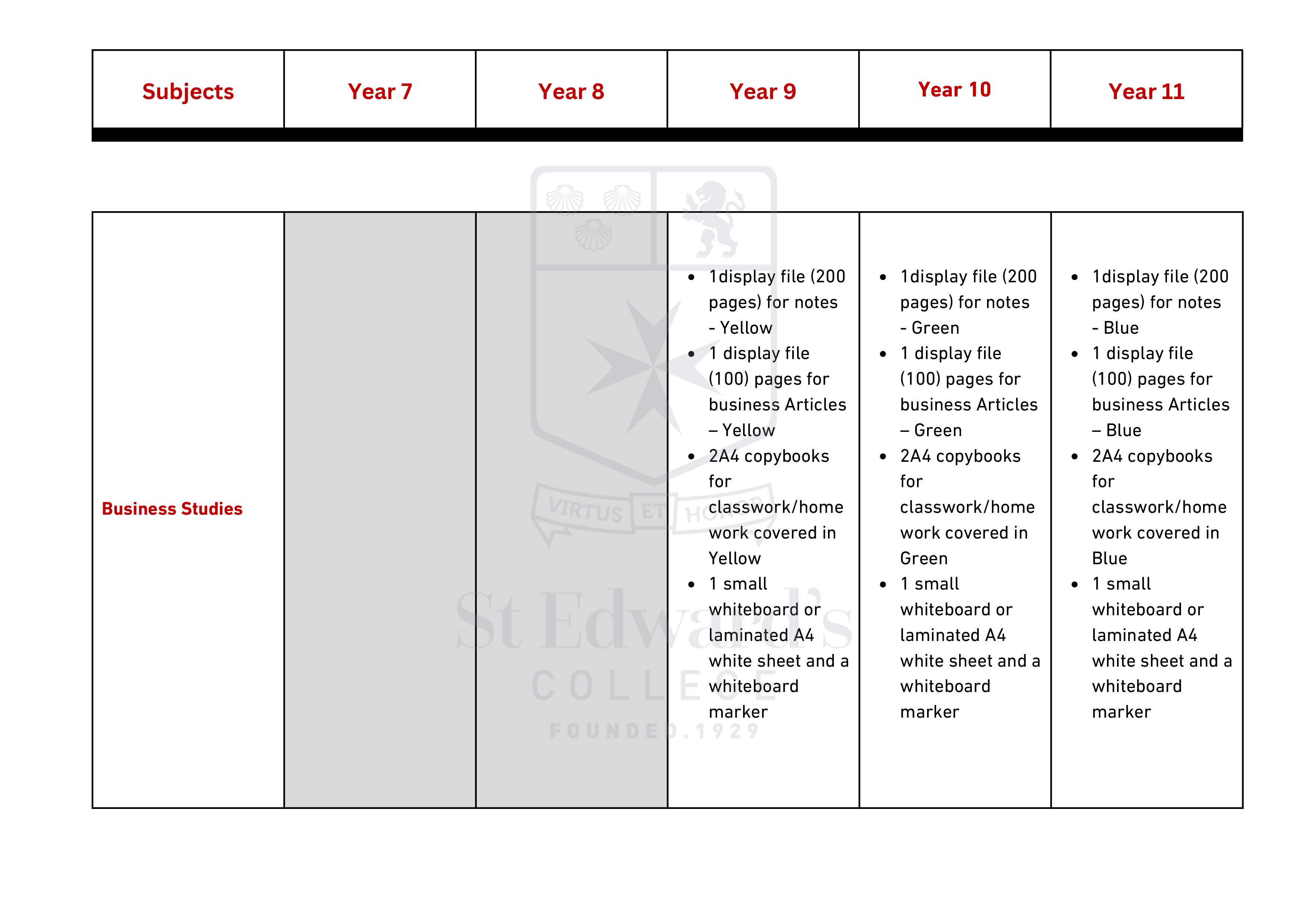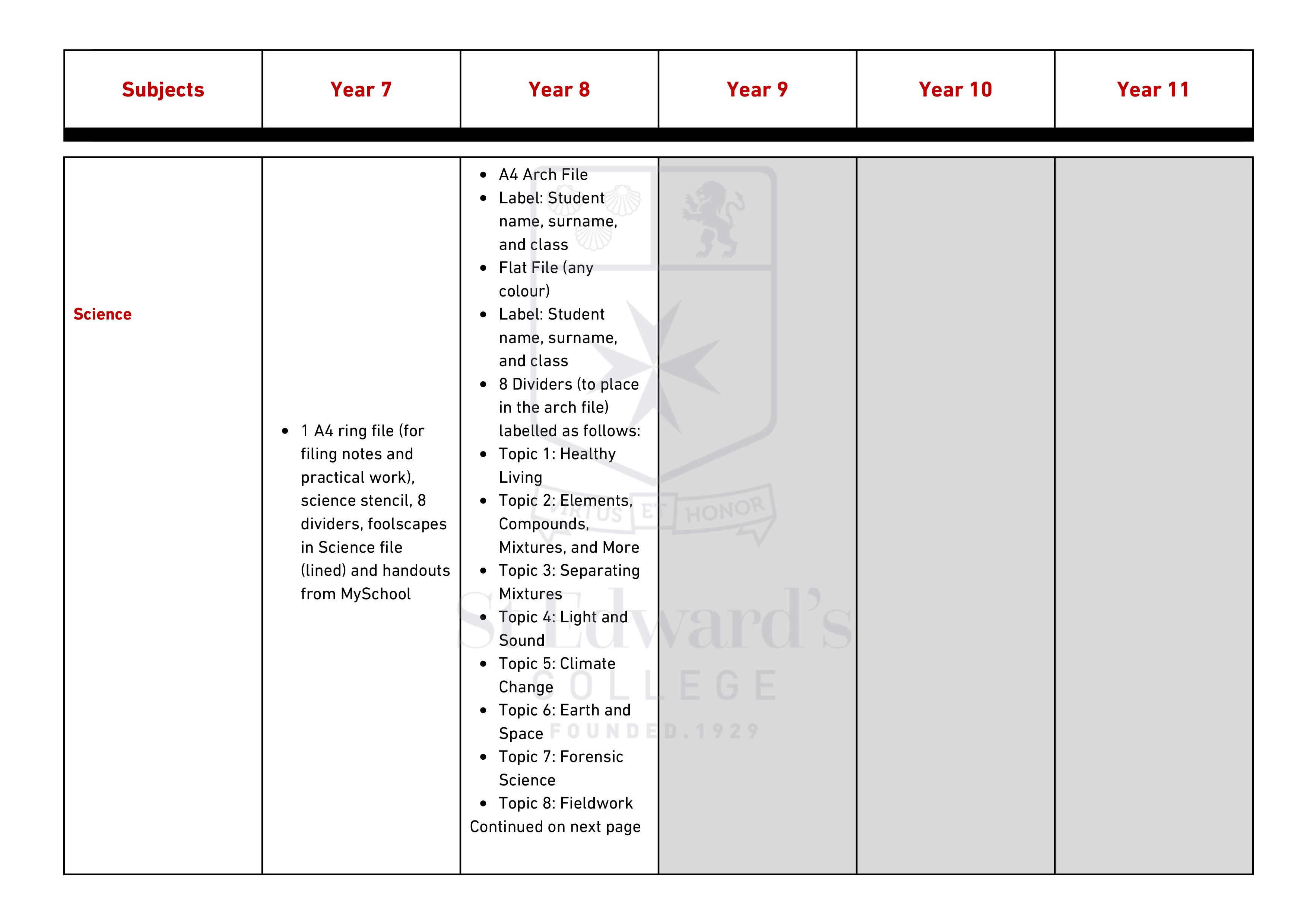 Middle & Senior School - Items Required for Scholastic Year 2025 – 2026