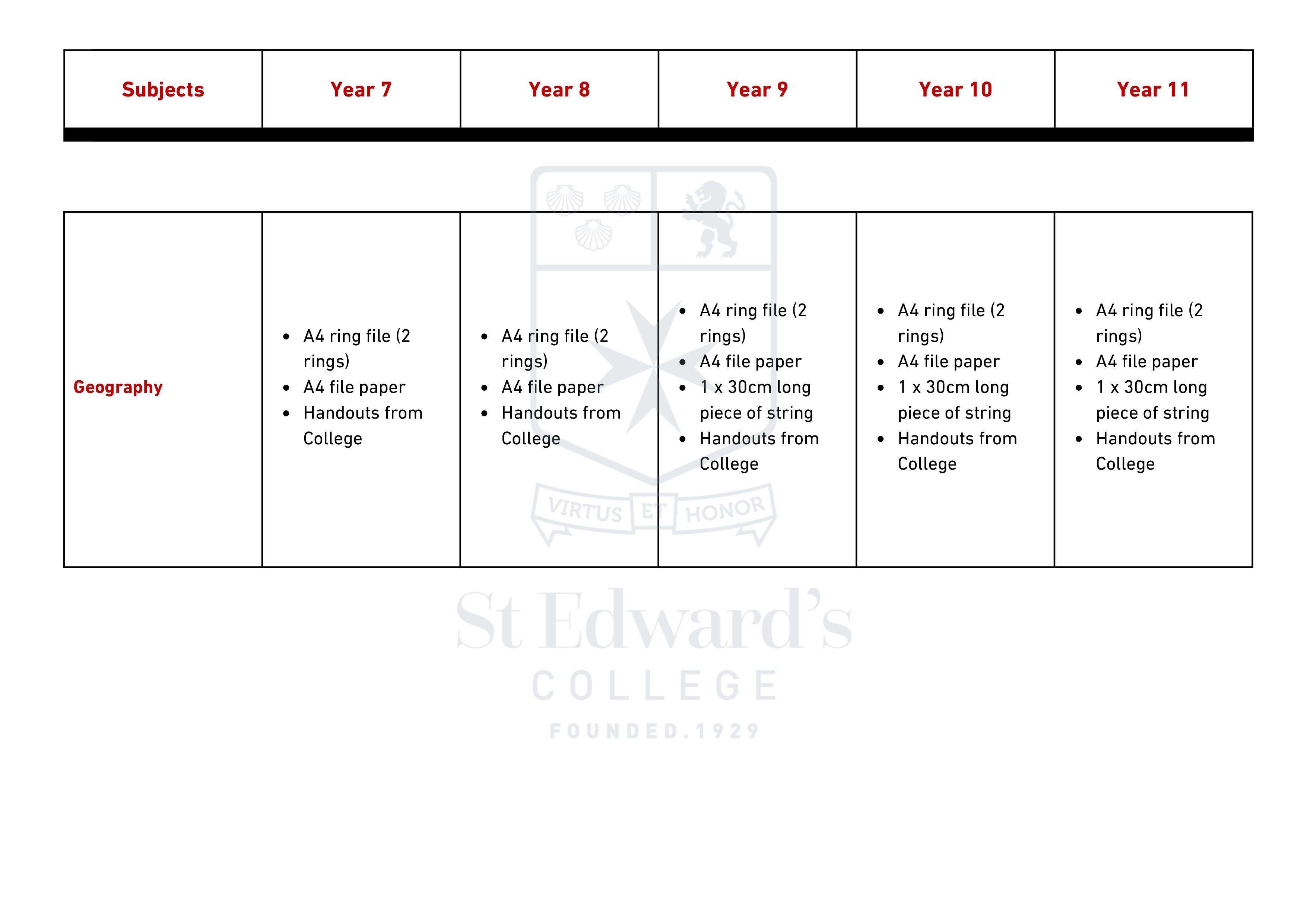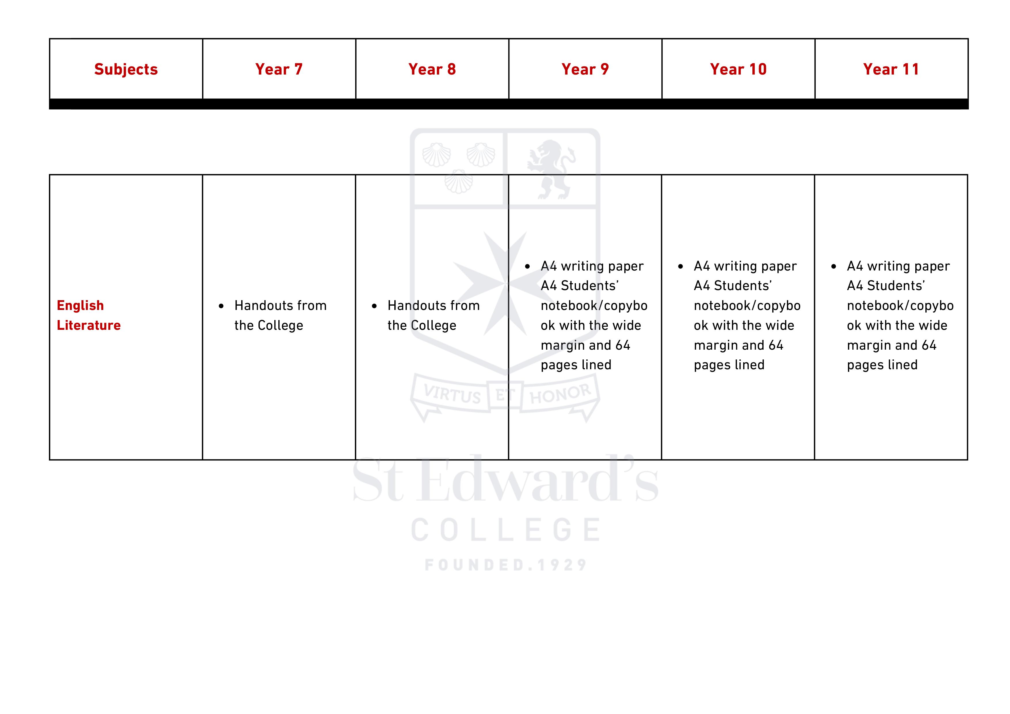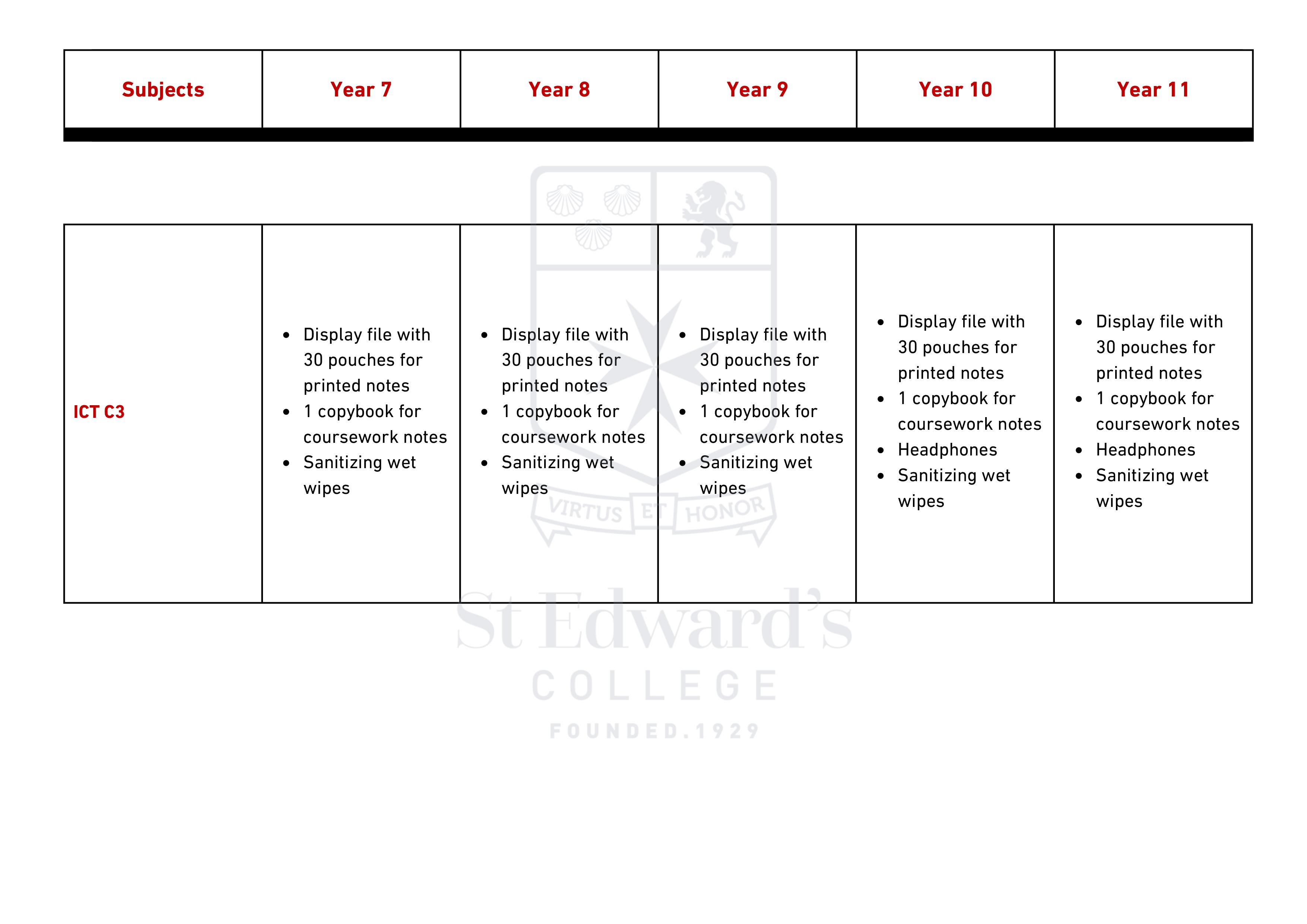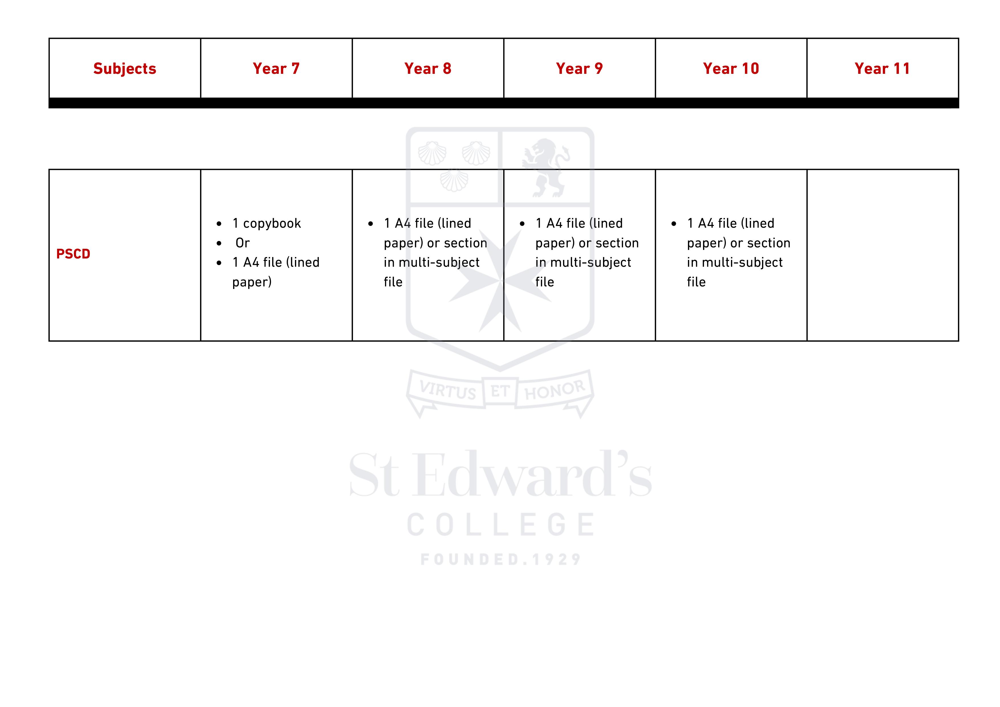 Middle & Senior School - Items Required for Scholastic Year 2025 – 2026