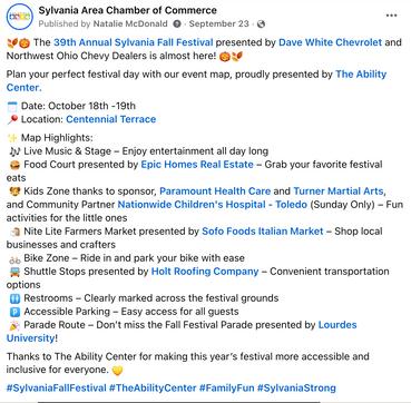 The Sylvania Fall Festival’s buzz spread through a multi-channel media push beyond the Chamber’s own platforms Local news outlets like WTOL and 13 ABC featured event highlights, while radio spots, social media posts, and online listings kept the excitement growing