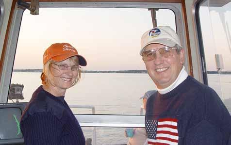 Clifford and Tisha Clark in the pilothouse of the Lt. Joe Theinert South Ferry