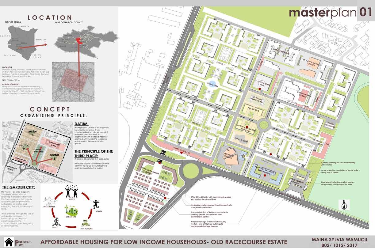 This project is a development proposal for a housing scheme for low-income households in Kariokor Area, Nairobi. The overarching objective of the project was to synthesize ideas and principles gained from best practices and existing literature so as to contribute towards the provision of housing the low-income households specifically for our country Kenya.