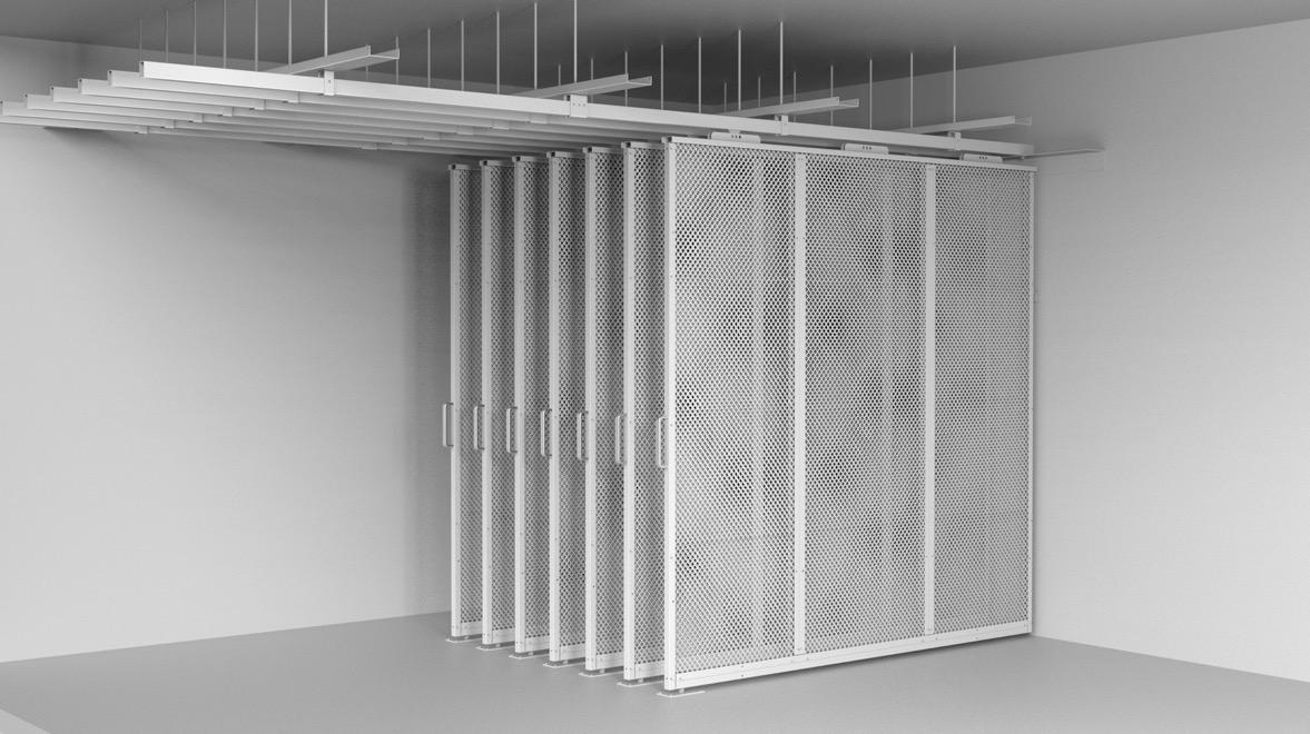 Are you looking to optimize your storage space and prefer to keep existing floors the same? Then opt for our ceiling-suspended pull-out art racks and ceiling-suspended pull-out screens, which require no ground rail.