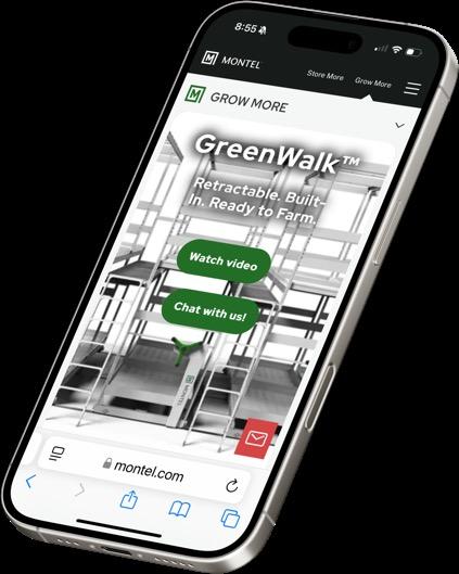 GreenWalk™ is a fully integrated retractable in-rack canelever scaffold for mule-eer indoor verecal farming. With its lightweight high grade aluminum construceon but sturdy built-in catwalk system, GreenWalk™ empowers growers to opemize space uelizaeon, streamline operaeons, and maximize yields like never before. GreenWalk™ is so simple, it’s revolueonary. It mounts directly to your GREENRAK® mobile verecal farming grow rack system with easy-to-use snap-and-hook hardware. No modificaeons to your exiseng system are required. Once GreenWalk™ is simply retracted, unlike other industry's scaffolds mounted between two mobile carriages, all aisles and crops remain accessible at all emes thereby the enere Montel GREENRAK® high-density mobile system is always fully operaeonal. No piece-by-piece setup and teardown necessary, and no extra storage space or room needed so you're never at risk of cross-contaminaeon.