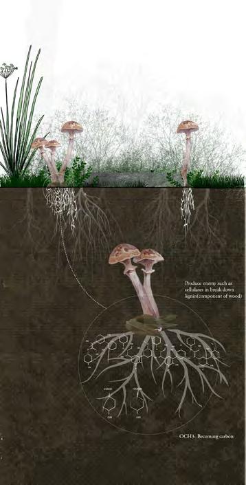 Volunteering with my local parks friend group, I’ve developed a deep interest in fungi, particularly mycelium—the root of mushrooms. I have come to appreciate the complexity and interconnectedness of the natural world and how mycelium is the foundation for much of it. These hands-on experiences shaped my view of a landscape architect as a negotiator between humans and non human stakeholders.