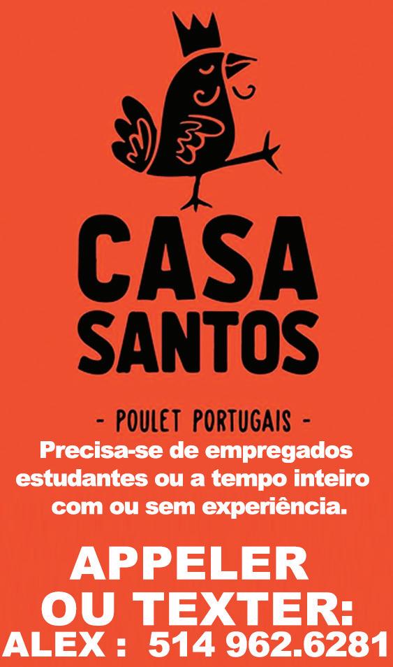 A VOZ DE PORTUGAL | 1 DE DEZEMBRO DE 2022 | 9 ANUNCIOS A melhor equipa de “pavé-uni” no Quebeque, pro cura pessoa com experiência para a colocação de “pavé-uni”. Precisa-se também de uma pessoa para trabalhar no betão e finalização de piscina. Nora: 450-628-5472 Companhia de construção e jardins procura pedreiros e homens com experiência no “Pavé uni” melhor salário na indústria. Estamos a procura igualmente de homens sem ou com pouca experiência. Contactar David 514-979-5604. Envie o cv para david@swdla.com Visite o nosso website para ter uma ideia do trabalho a fazer www.swdla.com DaRocha WEBSTER PAYSAGES EMPREGOS EMPREGOS PEQUENOS ANÚNCIOS UMA ESCOLHA CERTA TEL.: 514 - 299 - 1593 SÓ PARA RIR Pessoa para servir Tempo parcial do sábado até à segunda-feira numa residência