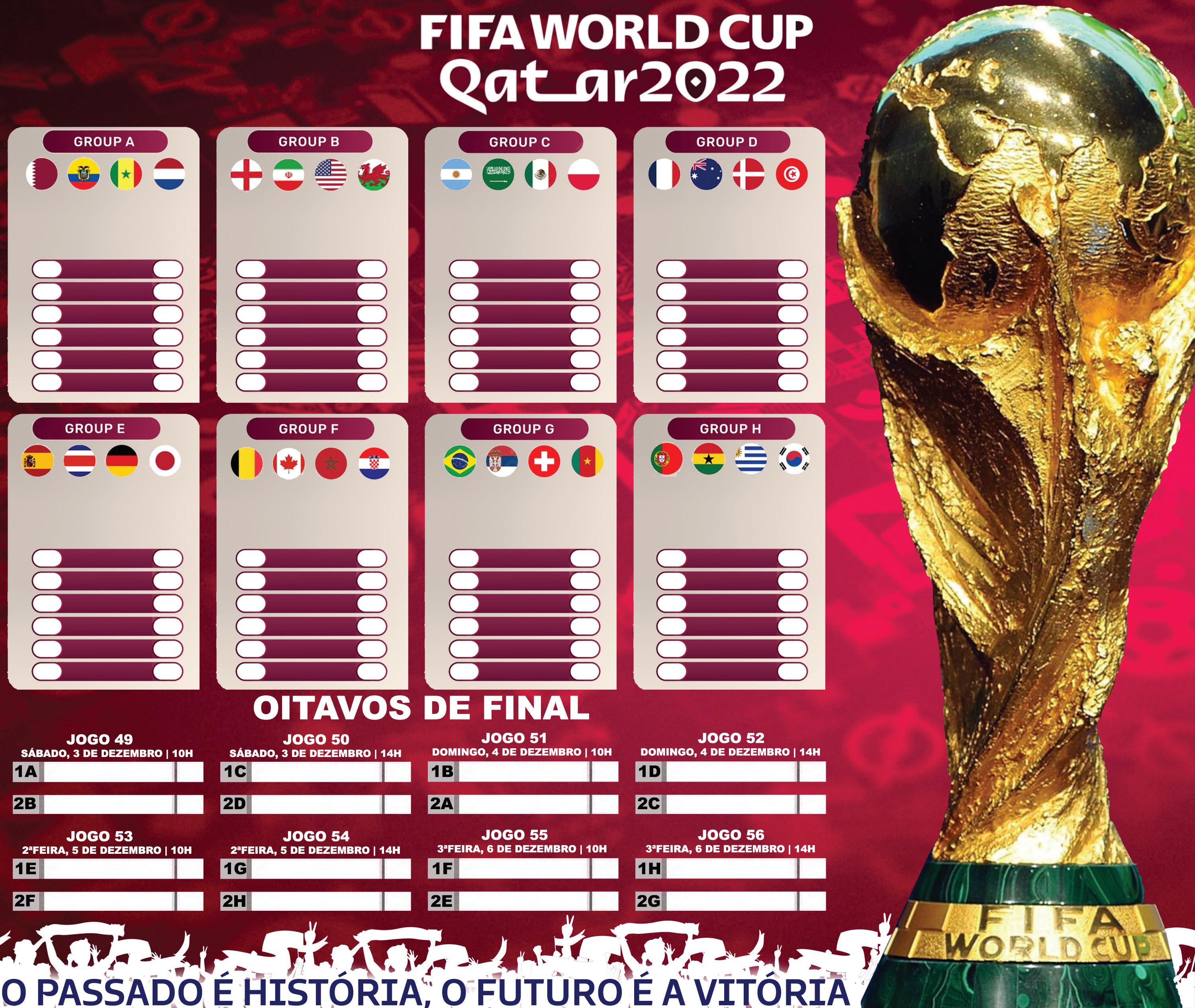 GRUPO A J GM GS P 1-CD Mafra 1 2 2 1 2-FC Vizela 1 2 2 1 3-GD Chaves 1 2 2 1 4-FC Porto 1 2 2 1 GRUPO B J GM GS P 1-Sporting 1 6 0 3 2-Rio Ave 0 0 0 0 3-Marítimo 0 0 0 0 4-Farense 1 0 6 0 GRUPO C J GM GS P 1-Moreirense 2 6 3 6 2-Benfica 2 5 2 6 3-E. Amadora 2 4 7 0 4-FC Penafiel 2 1 4 0 GRUPO D J GM GS P 1-SC Braga 1 3 0 3 2-P. Ferreira 1 1 1 1 3-Casa Pia AC 1 1 1 1 4-Trofense 1 0 3 0 GRUPO E J GM GS P 1-Gil Vicente 2 4 2 4 2-Nacional 2 2 2 3 3-Portimonense 2 2 2 3 4-SC Covilhã 2 2 4 1 GRUPO F J GM GS P 1-Boavista 2 4 2 6 2-Vitória SC 1 0 0 1 3-Vilafranquense2 0 1 1 4-B SAD 1 2 3 0 GRUPO G J GM GS P 1-Leixões 2 4 2 6 2-Feirense 2 1 1 2 3-Oliveirense 3 2 3 2 4-FC Arouca 1 1 1 1 5-Santa Clara 2 2 3 1 GRUPO H J GM GS P 1-A. de Viseu 2 2 2 2 2-Torreense 2 2 2 2 3-CD Tondela 2 1 1 2 4-Famalicão 1 1 1 1 5-Estoril Praia 1 0 0 1 MARCADORES TRÊS GOLOS: Marcus Rashford [Inglaterra] Kylian Mbappé [França] Cody Gakpo [Países Baixos] Enner Valencia [Equador] DOIS GOLOS: Álvaro Morata [Espanha] Cho Gue-sung [República da Coreia] Ferrán Torres [Espanha] Andrej Kramaric [Croácia] Bukayo Saka [Inglaterra] Olivier Giroud [França] Richarlison [Brasil] Mohammed Kudus [Gana] BRUNO FERNANDES [PORTUGAL] Lionel Messi [Argentina] Mehdi Taremi [Irão] Salem Al Dawsari [Arábia Saudita]