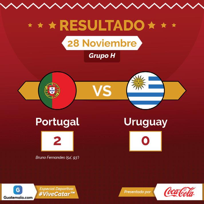 A Seleção apurou-se para os oitavos de final ao vencer o Uruguai por 2-0, com um bis de Bruno Fernandes, e, no derradeiro jogo, frente à Coreia do Sul, pode só com um empate (ou nem isso, caso o Gana não vença por mais de dois golos) confirmar o primeiro lugar no grupo.